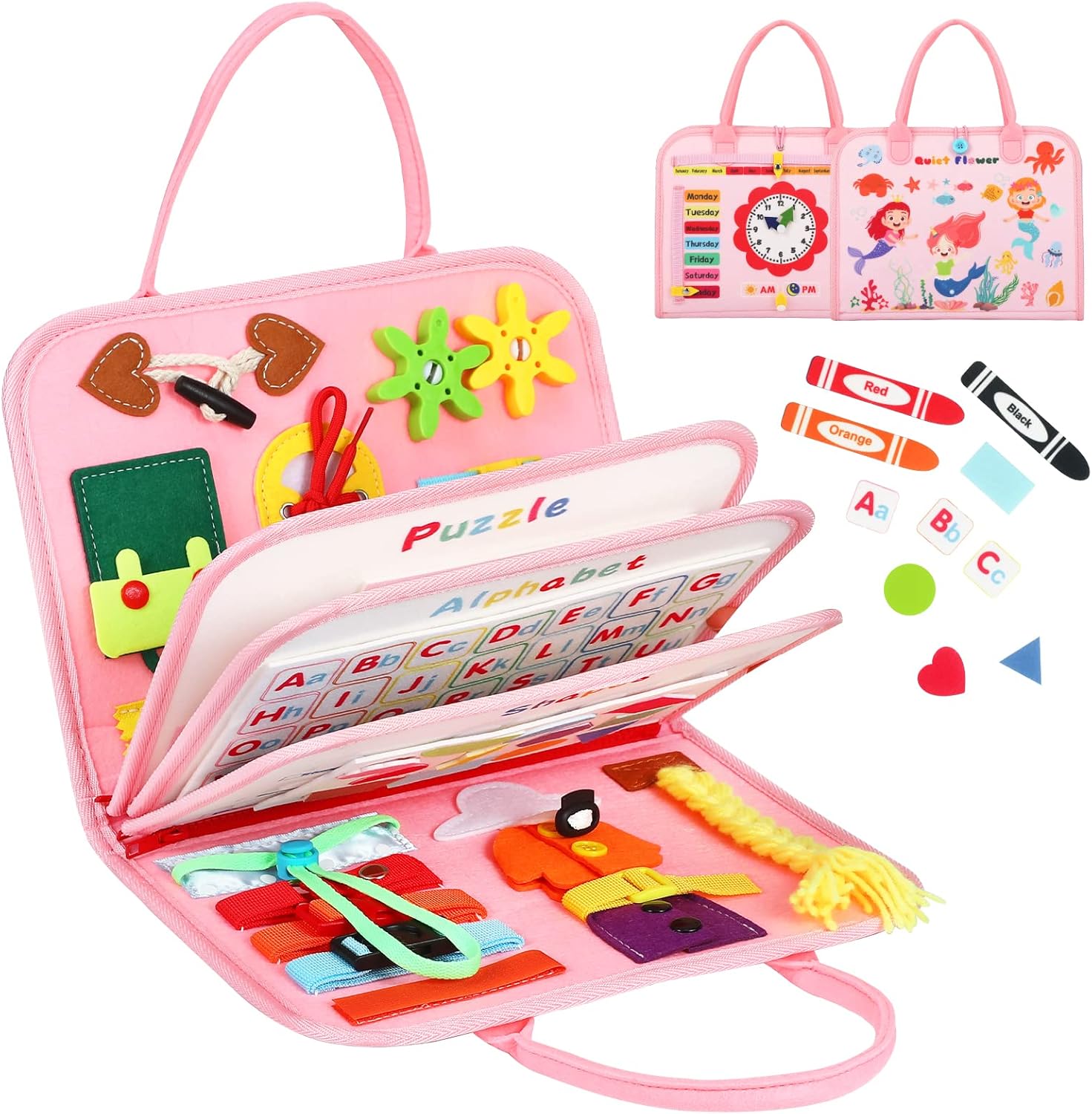 【Sturdy & Safety Toys】As a toy for children, we attach great importance to the quality of this product–Safe Educational busy board for toddlers! It’s made of soft and durable felt, certified by CPC, ASTM, CPSIA, etc. Because providing a safer and more durable toy for your baby is always our top priority!!!