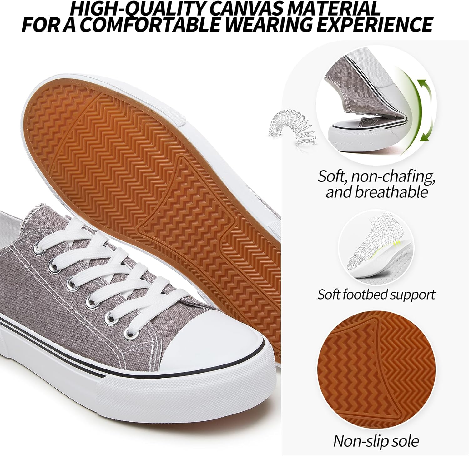 Customers find these canvas shoes comfortable, cute, and of top-notch quality, with many noting they look like actual Converse shoes. The shoes fit well, accommodating wide feet, and come in various colors, with one customer specifically mentioning the soft pink shade. While some customers appreciate the arch support, others report no support at all. The shoes receive positive feedback for their value, with customers saying they’re good quality for the price.