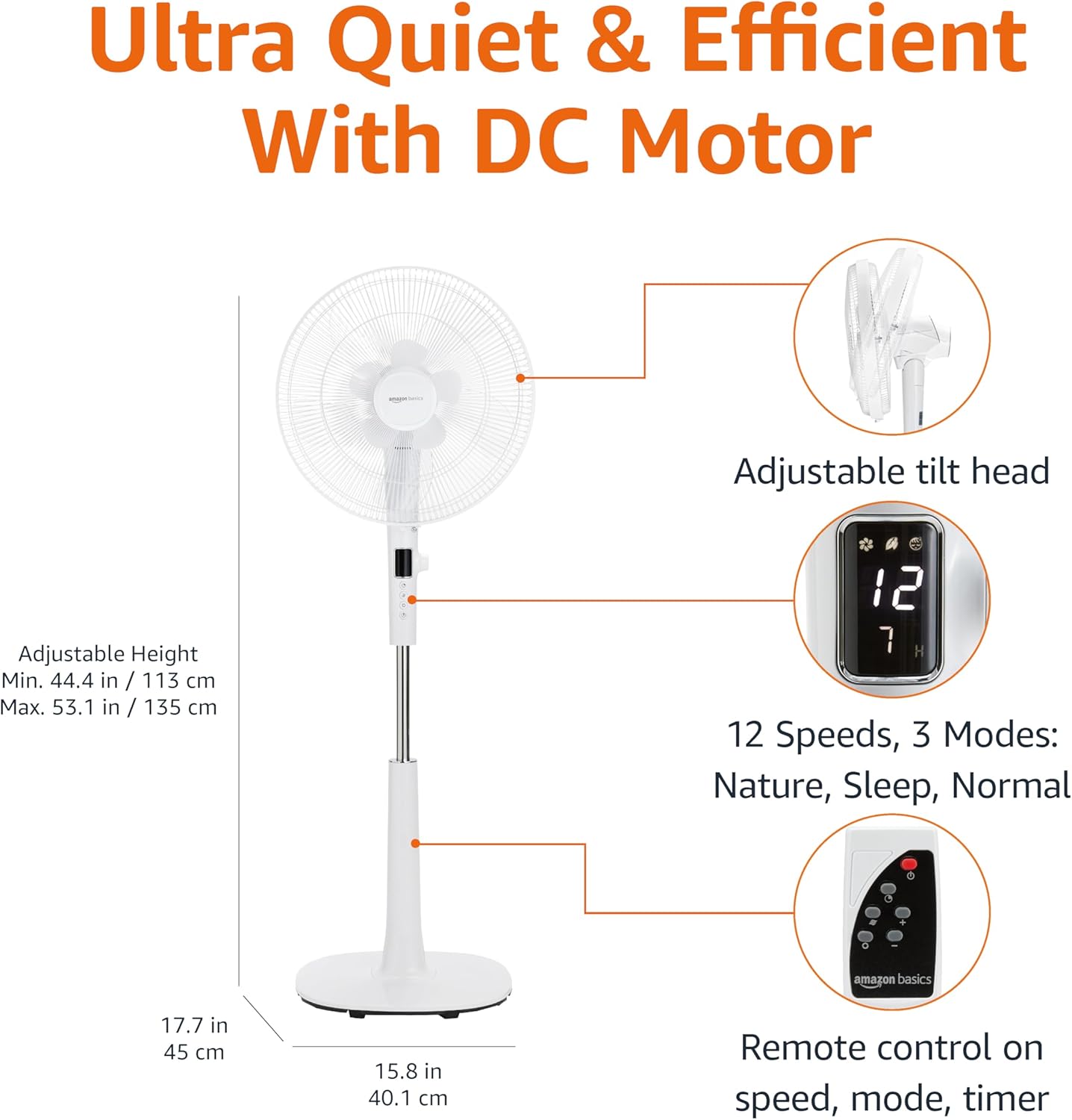 FLEXIBLE REACH: The adjustable height range of 44.4 to 53.1 inches, combined with a multi-directional tilting head, ensures optimal airflow delivery to your medium to large room