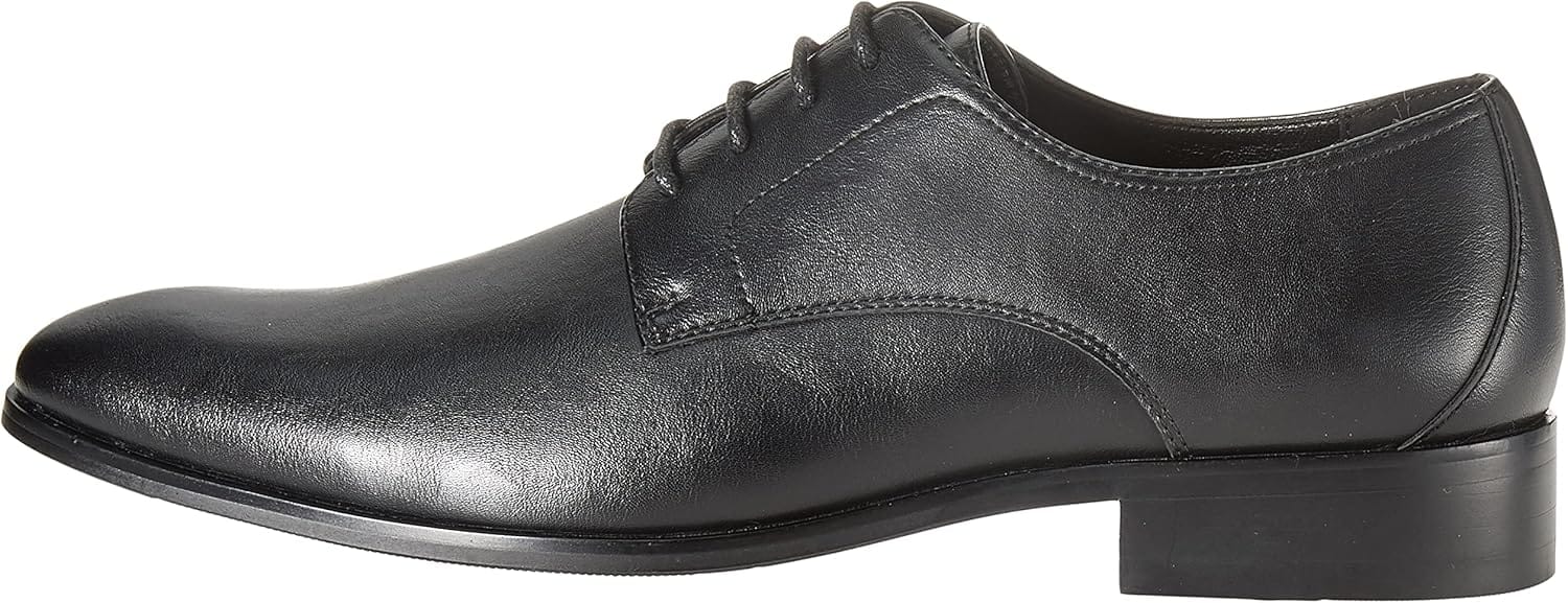 Classic and versatile plain toe lace-up derby designed for daily wear and superior fit. Crafted with a leather-like material upper with soft and smooth touch.