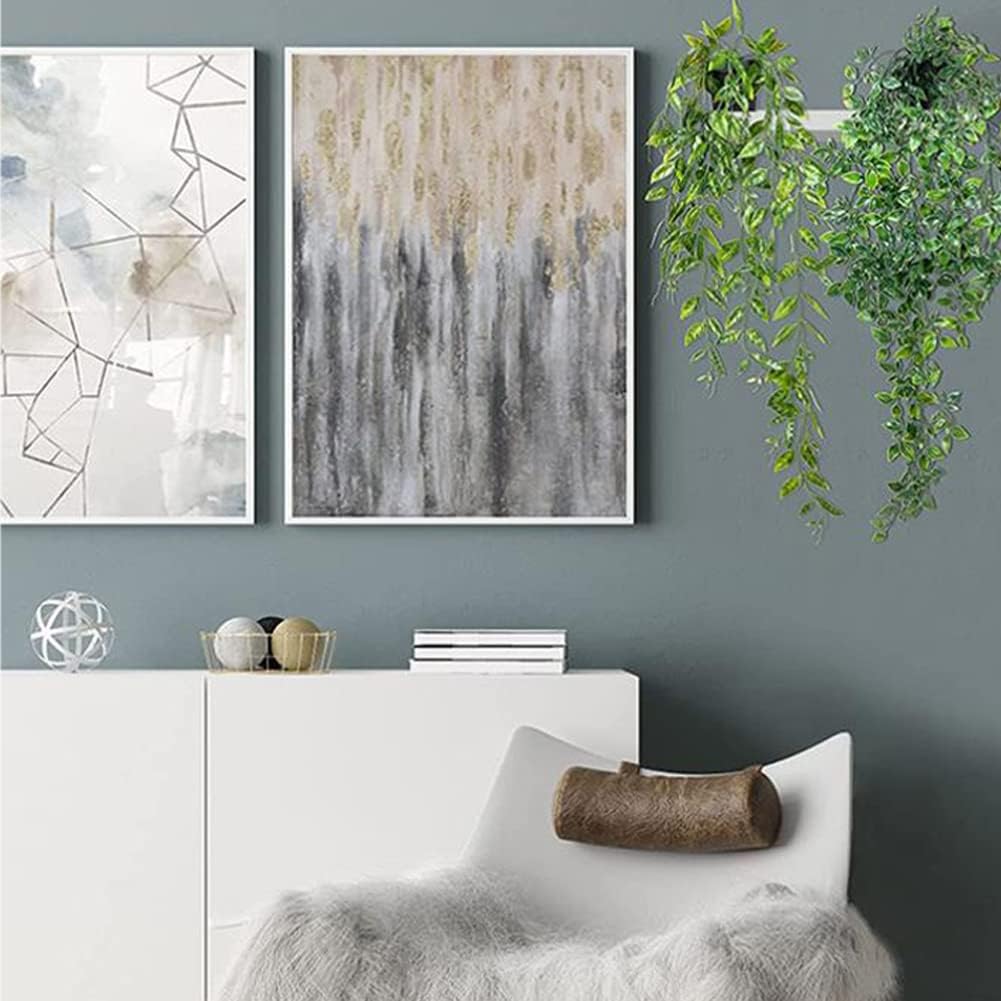 2Pcs Hanging Artificial Plants in Pots: The package includes 2 packs of green fake hanging plants pot, each with 9 bifurcations, the length of different branches is different, and the total length of the artificial vine is 85cm/33.4 inch.