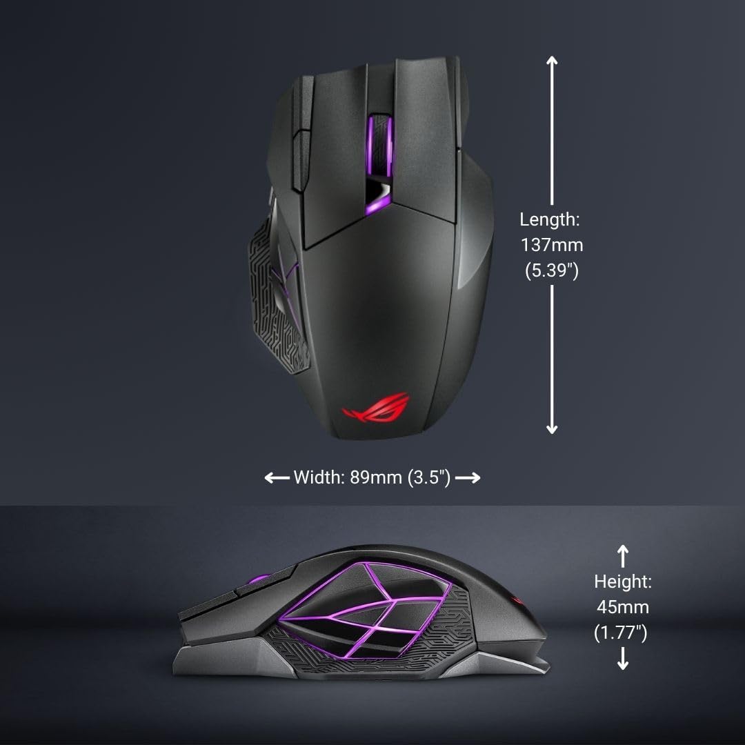 ASUS ROG Spatha X Wireless Gaming Mouse (Magnetic Charging Stand, 12 Programmable Buttons, 19,000 DPI, Push-fit Hot Swap Switch Sockets, ROG Micro Switches, ROG Paracord and Aura RGB Lighting).