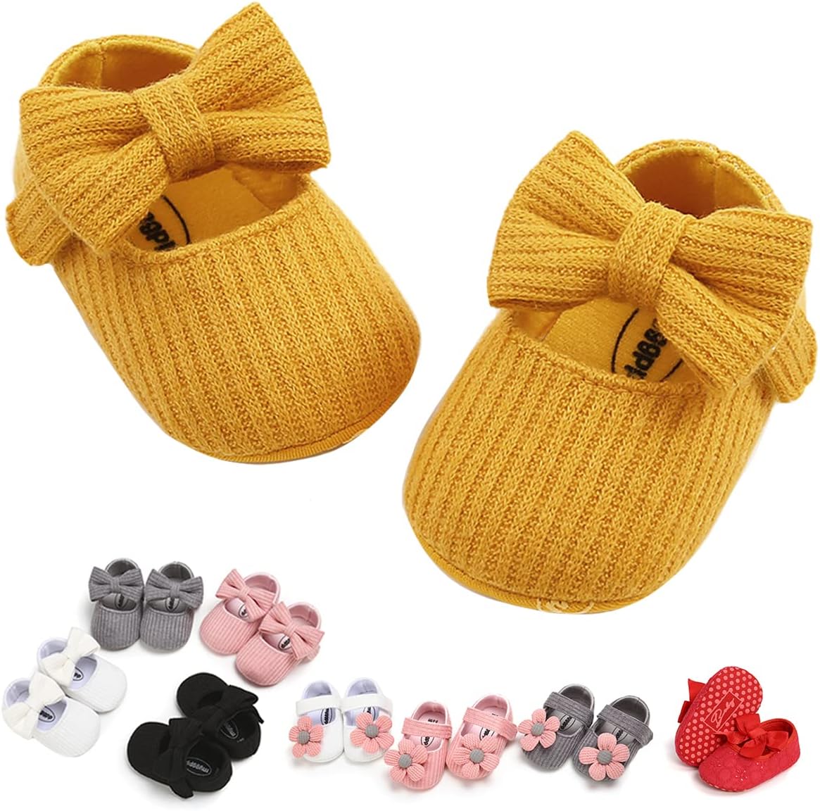 Baby Girls Mary Jane Flats with Bowknot Floral Princess Wedding Dress Shoes Soft Newborn Infant Crib First Walkers Prewalker