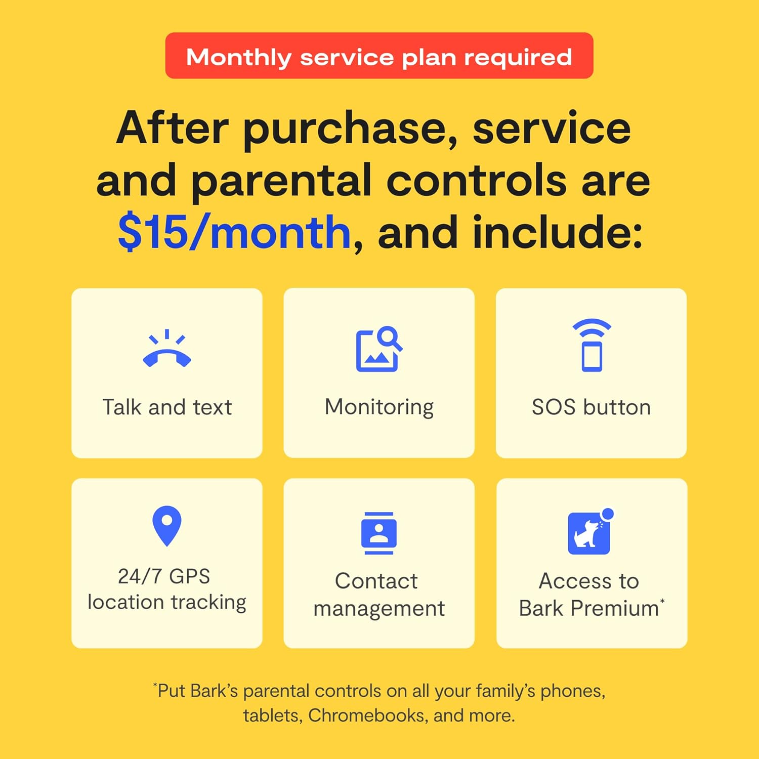 ACTIVATION REQUIRED: After purchase, users will pay $15/month for service and parental controls. The Bark Watch has its own phone number.