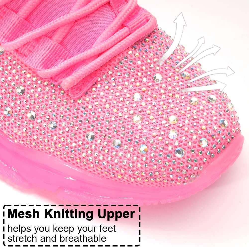 Customers find these sneakers comfortable, with one mentioning they can wear them for hours without pain, and appreciate their dressy style and high-quality insoles. The shoes are sparkling and full of bling, with one customer noting the rhinestones dress them up nicely. While some customers find them true to size, others report they run large, and customers disagree on the fit. Additionally, several customers report that the rhinestones fall off after one wear.