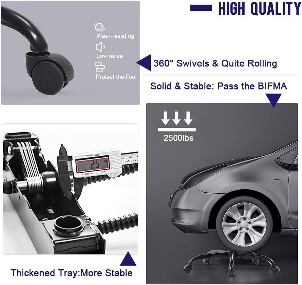 Gaming chair have heavy-duty metal base, great stability and mobility. Racing chair maximum capacity up to 250 lb, and the base has 2500lbs.