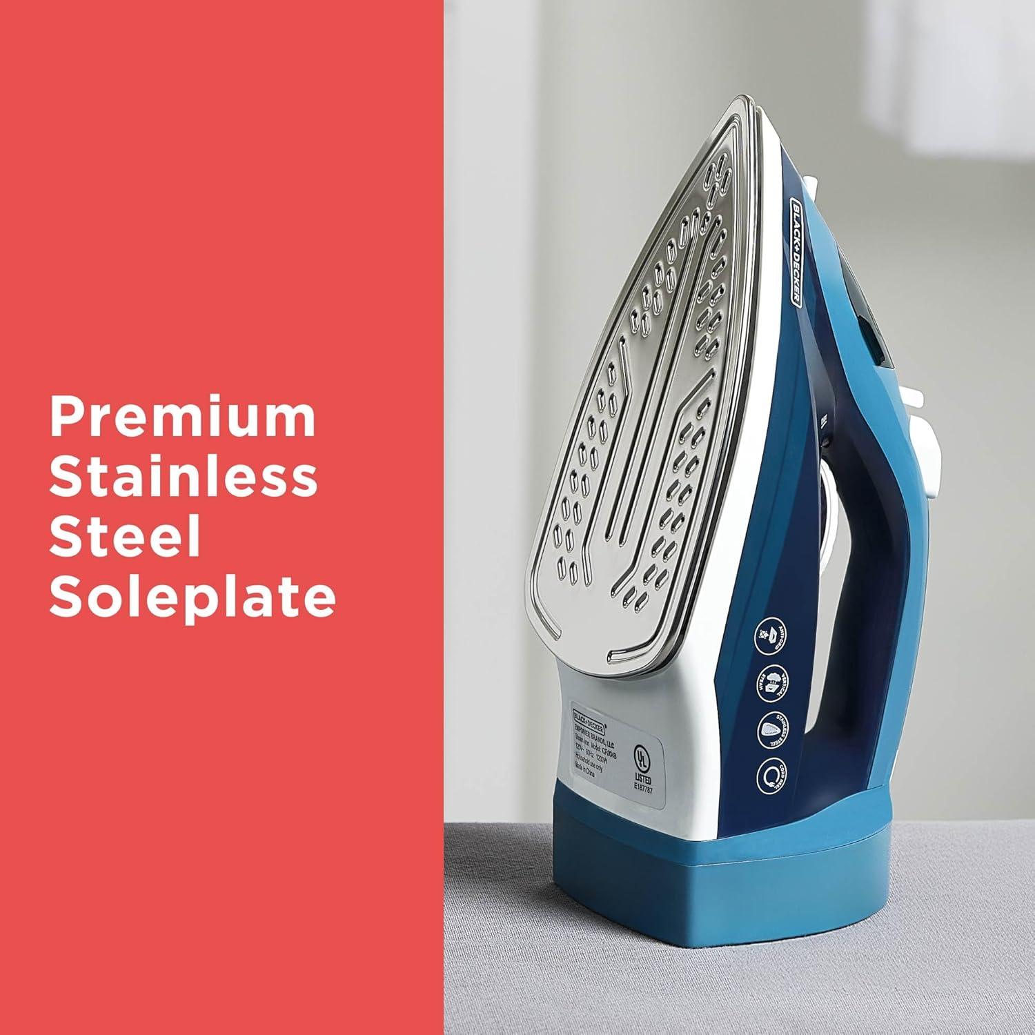 2X MORE DURABLE – THE #1 US BRAND IN IRONS*—The BLACK+DECKER Cord Reel Iron features a premium stainless steel sole plate for long-lasting durability, offering 2X more durability compared to standard ceramic.