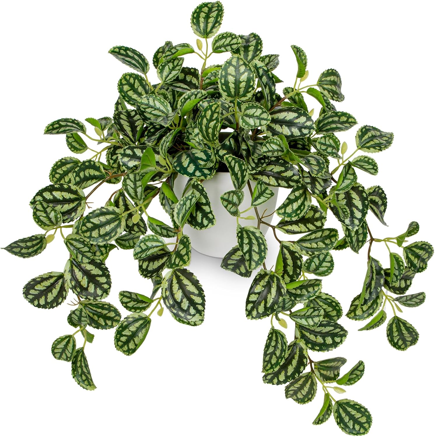 VERSATILE DECOR: Perfect for various indoor settings, such as Home, office, hotel, shop, bedroom, living room, bathroom, dining room, entryway, kitchen, windowsills, mantle, table, desk, shelf, furniture tops, and centerpieces. The artificial watermelon peperomia plants add a touch of nature to any space, blending seamlessly with different decor styles.