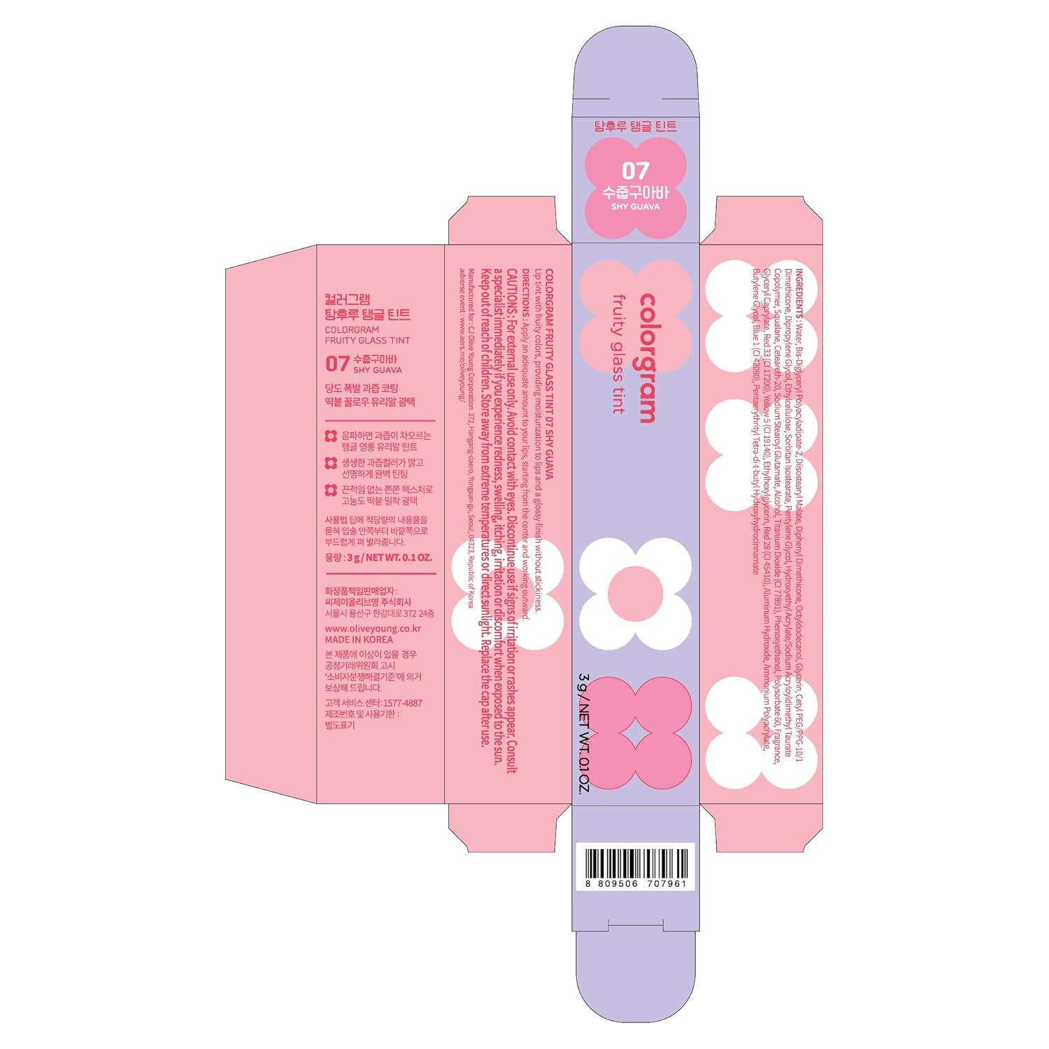 COLORGRAM Fruity Glass Tint 07 Shy Guava | Korean Long Lasting & Waterproof Lip Stain| Glossy Lip Gloss with Lovely Soft Pink Shade | Buildable, Blendable, Moisturizing, Non-Sticky | 0.11 Oz