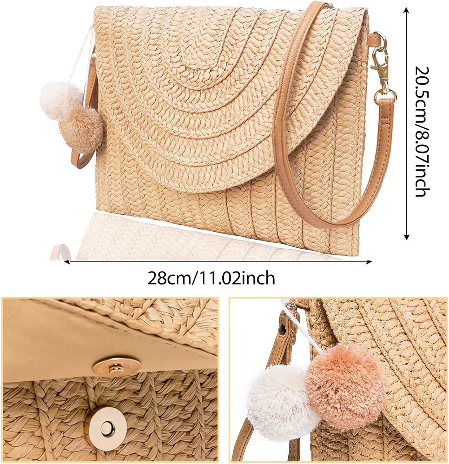 Multiple Use – You can use as straw shoulder bag or a clutch straws wallet