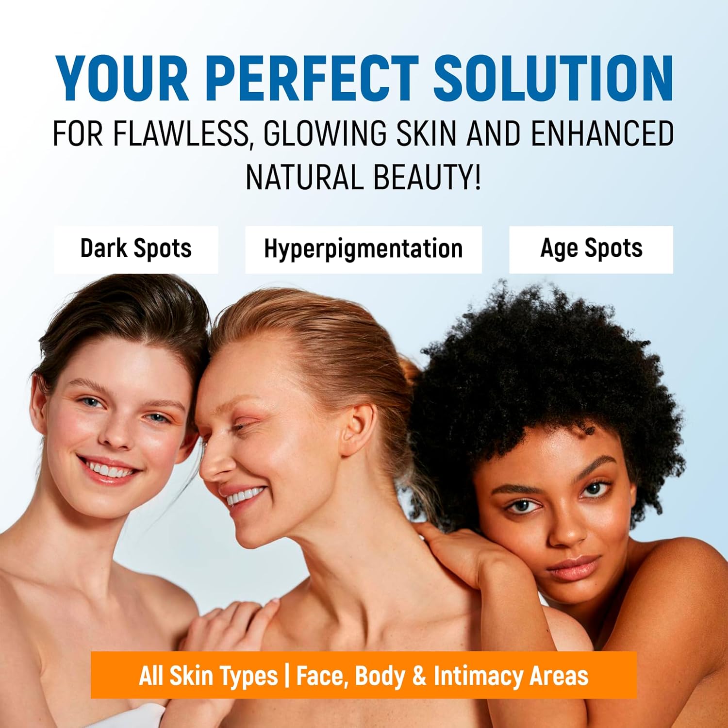 Dark Spot Remover: Our dark spot corrector cream effectively on the face and body (underarms, armpit, knees, elbows, and intimate areas).