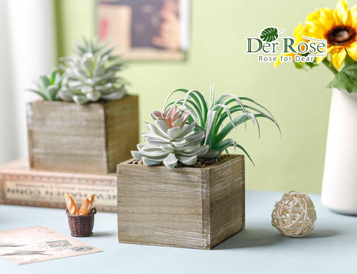 Der Rose 2 Pack Fake Plants Succulents Plants Artificial Cactus Plants in Wood Pots with Pink Flowers for Farmhouse Bathroom Decor