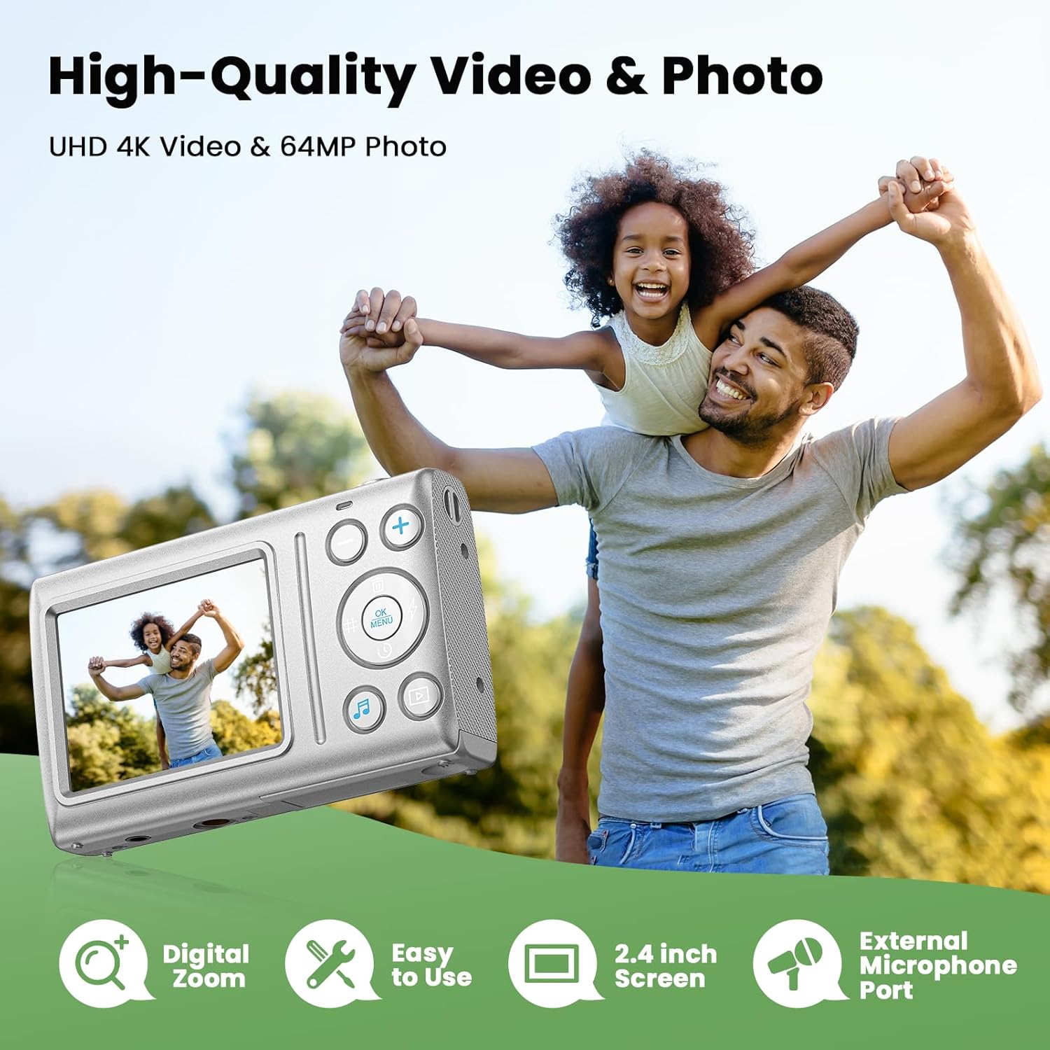 Beginners’ 4K 64MP digital camera lets you easily capture every detail and record good moments at home or in travel!