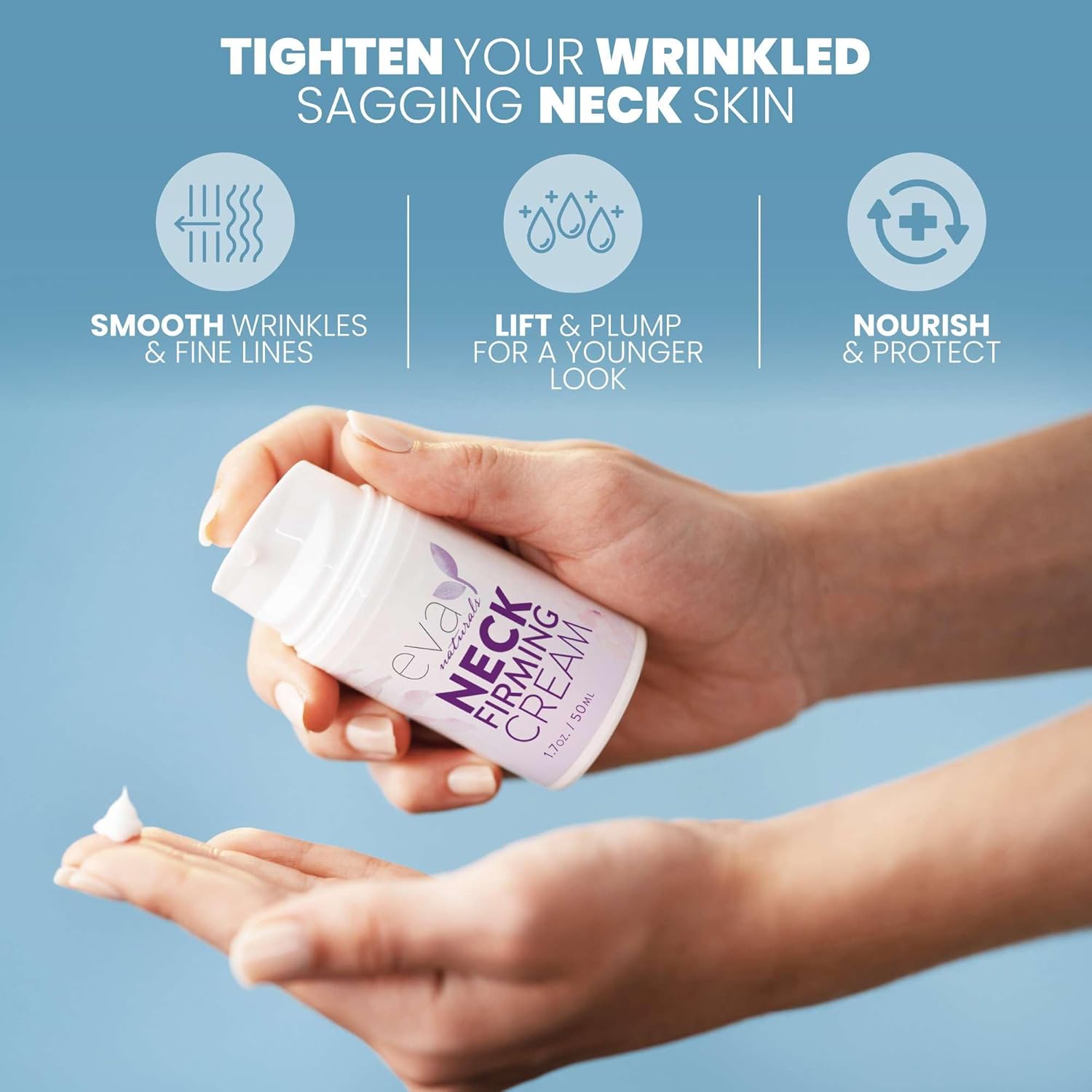 Join thousands who trust Eva Naturals to tighten neck skin and reduce the look of lines and crepe.