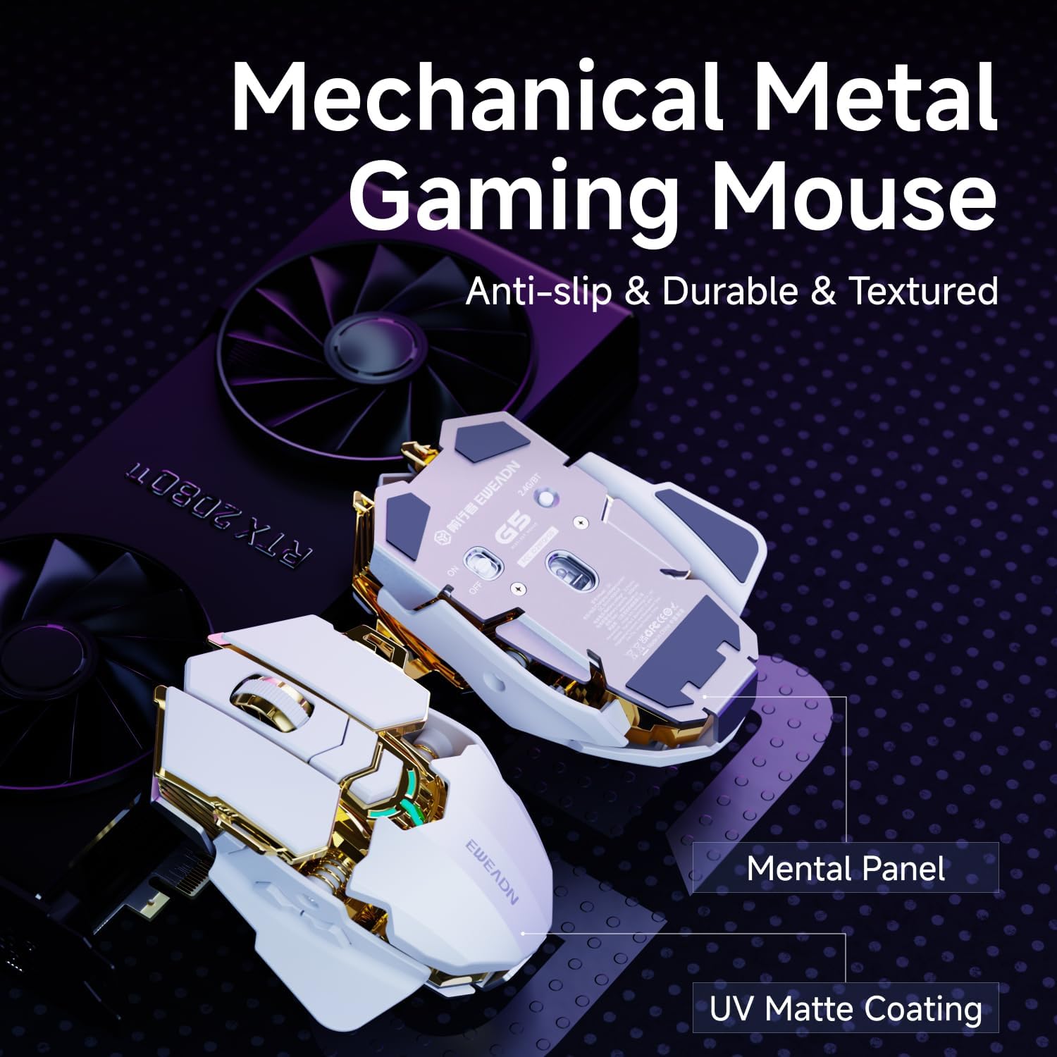 【Triple Mode Connectivity & Wide Compatibility】EWEADN G5 bluetooth mouse for laptop seamlessly switches between Bluetooth, 2.4GHz wireless, and Type-C wired modes—connect up to 4 devices simultaneously. Perfect for transitioning from PC to iPad, laptop, or MacBook without replugging. As a reliable computer mouse, it works smoothly with Windows, Mac OS, iOS, Android, and Linux, giving you the ultimate flexibility for gaming and productivity