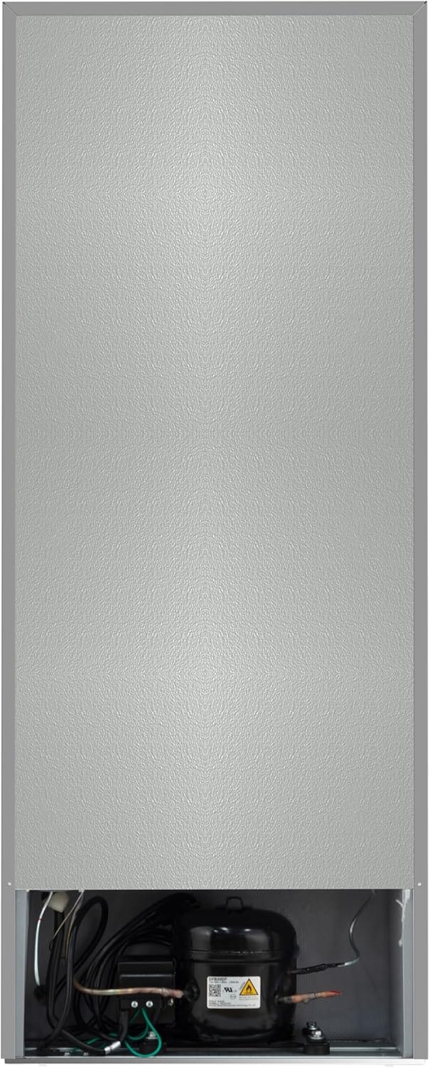 Our modern 10 cu. Ft. Refrigerator has a 2 Reversible doors configuration with a freezer compartment on top and a fridge compartment at the bottom. Featuring an adjustable thermostat, a built in lamp, a slide out shelf and adjustable feet, This CFC free unit will allow you to easily store your snacks and beverages to keep them fresh at all time.
