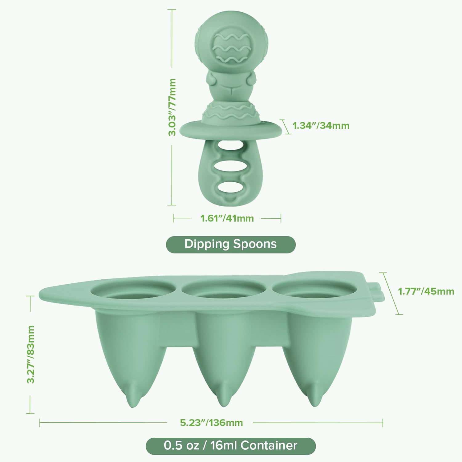 𝐉𝐔𝐒𝐓-𝐑𝐈𝐆𝐇𝐓 𝐌𝐈𝐍𝐈 𝐒𝐈𝐙𝐄 𝐅𝐎𝐑 𝐓𝐈𝐍𝐘 𝐓𝐔𝐌𝐌𝐈𝐄𝐒:Each cavity of the Haakaa Ice Pop Mold holds 0.5 oz / 16 ml—perfectly portioned for small appetites. These bite-sized pops are great for introducing first tastes and helping little ones build confidence in self-feeding and motor skills.