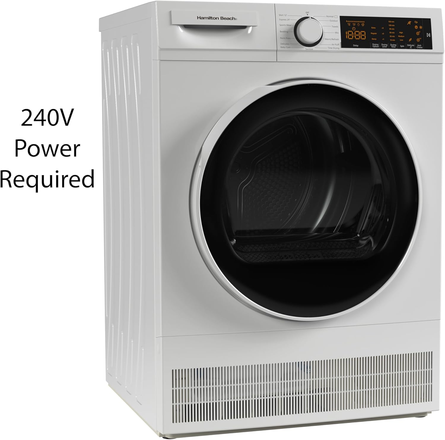 Capacity: 4.0 cu. ft.Ventless condenser technology interface with Jog Dial technologyProgram selection Simple, intuitive, LCD display Cabinet Type allows for decreased vibration level and increased stability.Sensor DryingDelay Timer-Enables you to postpone the starting time of the drying process.Two Way TumblingFailure Detection System failures related to temperature rise, humidity sensor, door sensor, no air circulation and etc. Drying Cycle Energy Consumption Displayconsumption Water Tank Warning IndicatorLint Filter Warning IndicatorCondenser Cleaning Warning Indicatorend user Dryer Level AdjustAnti-wrinkletemperature level can be adjusted with low, medium and high options.Sanitize- ensures that the main drying temperature is adjusted to high levelShirts’12-dry 2 to 3 shirts and be ready for ironing in 12 minutes.includes LED Drum Light