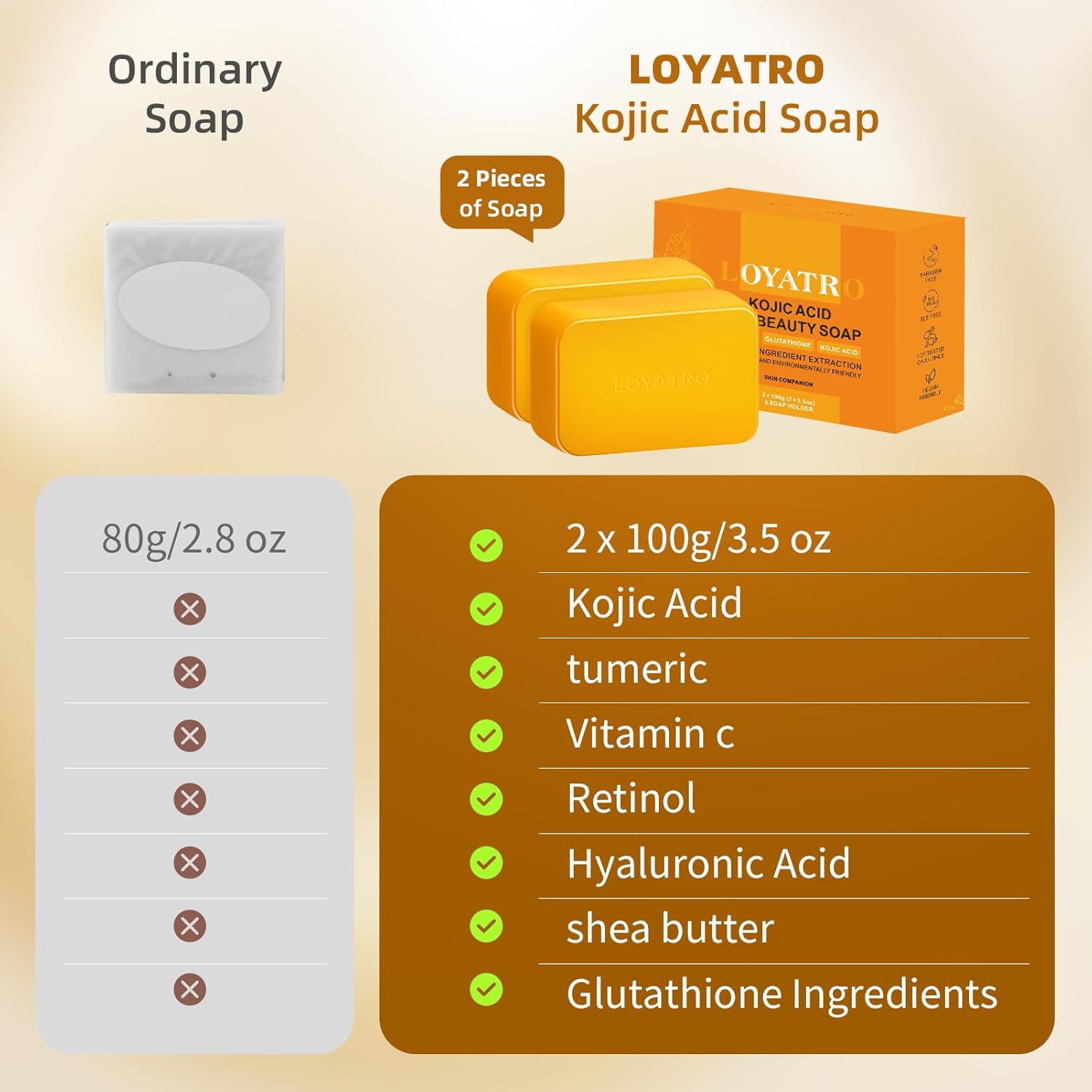 SUITABLE FOR ALL SKIN TYPES: Suitable for daily use, this organic turmeric soap bar can help to keep skin clean and refreshed, while also providing potential benefits to the complexion. This kojic acid Turmeric soap for both men and women. This moisturizing soap can be used as an underarm soap, inner thigh tan remover, bikini area, facial soap or neck tan remover
