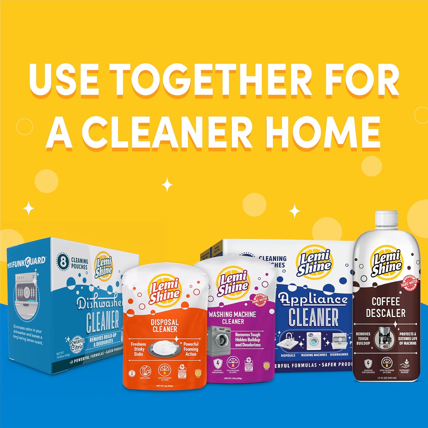 LEMI SHINE CLEANING PRODUCTS: Eco-friendly, plant-based, biodegradable, and safe for your family; From Dish Detergent Booster and Garbage Disposal Cleaner to Coffee Maker Cleaner, we’ve got your home cleaning supplies covered