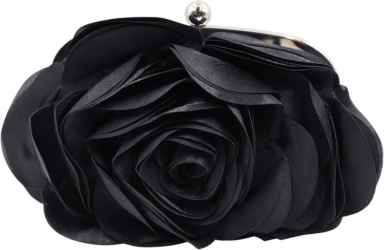 Little Floral Clutch Purse for Women – Elegant Rose Petal Evening Bag with Detachable Chain for Wedding, Gala, Prom