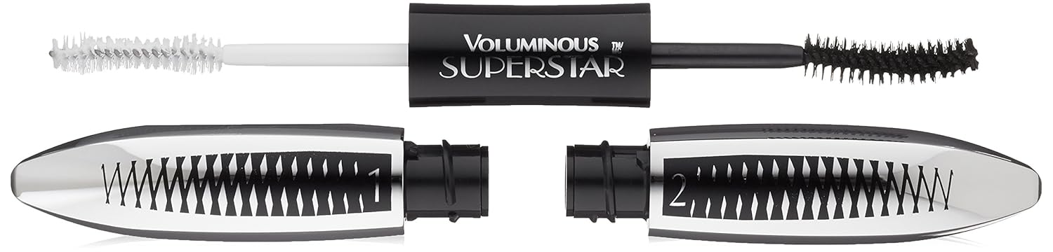 L’Oral Paris Voluminous Superstar Mascara is a two-step primer and lengthening mascara for a show-stopping lash effect. Super-volumizing primer builds dramatic volume on every lash and creates an ultra smooth base to maximize mascara performance. Super-extending mascara with a fiber-rich black formula. • Super-volumized. Super-extended lashes. • Primer and Fiber Mascara System • Superstar Lashes • Smudge proof mascara Start by applying the Super-Volumizing primer making sure to coat every lash. Then, before the primer dries apply the fiber-rich mascara on top of the primed lashes to create a show-stopping lash look. Repeat on other eye. To safeguard L’Oral purity, reserve this product for your personal use. Treat the applicator with the hygienic care you give your eyes. Never apply this product in a moving vehicle. Do not dilute mascara with water, saliva, or any other substance. Cap tightly after use. If change in odor or appearance occurs, discontinue use. Do not use this or any other eye cosmetic if your eye is injured, irritated, or infected. Consult a physician promptly.