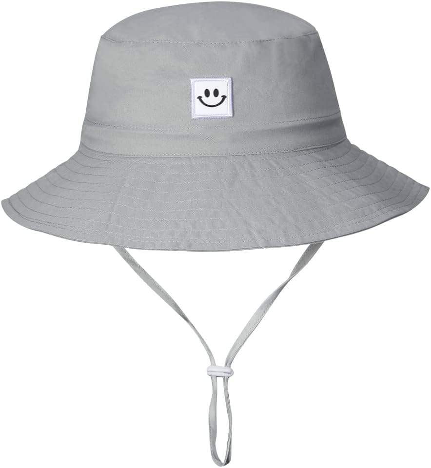 Customers love the sun hat’s smiley face design and find it to be a great summer accessory for babies and toddlers. The hat offers excellent sun protection with its wide brim, stays securely on even during active play, and features an adjustable neck strap that can be tied to the chin. While customers appreciate that it comes in multiple sizes, some mention it runs a bit big.