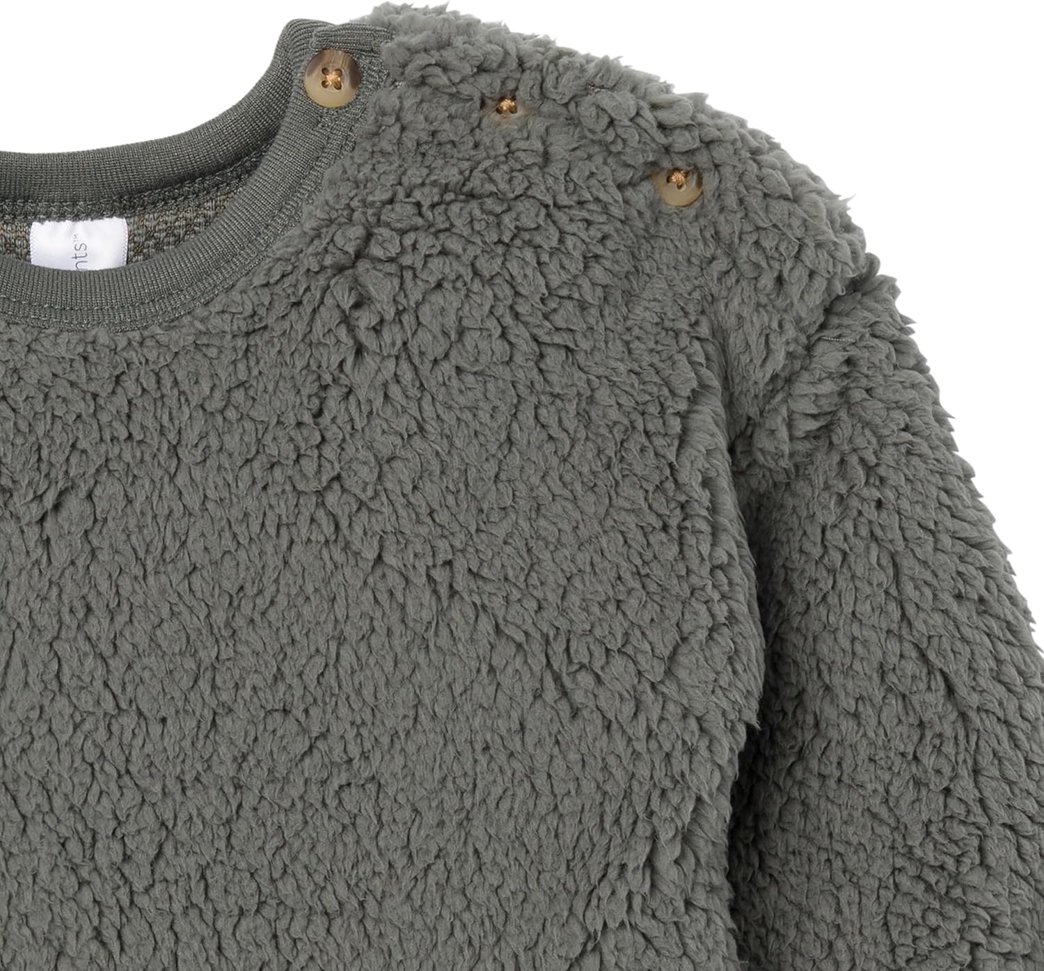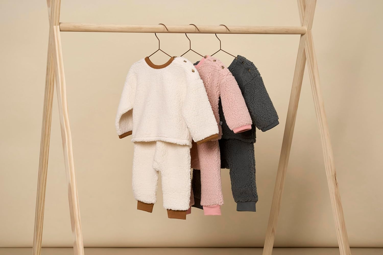 Dress your little one in warmth and style with our baby top and pants set, made from very soft microfleece for a cozy feel. The drop-shoulder top style ensures a loose and comfy fit, perfect for all-day wear. Shoulder placket faux horn buttons simplify dressing, while the comfort-stretch ribbing at the pants’ waistband provides a secure and flexible fit. The perfect combination of comfort and charm, your little one will love wearing this outfit again and again!