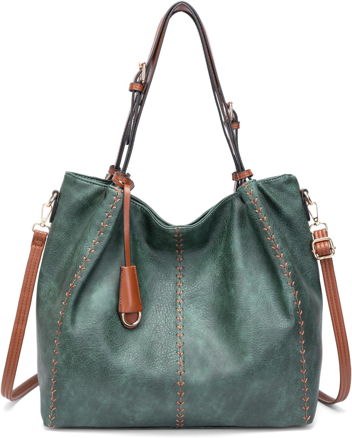 myfriday Casual Faux Leather Tote Hobo Bag for Women, Soft Shoulder Bag Crossbody Satchel Purse and Handbag