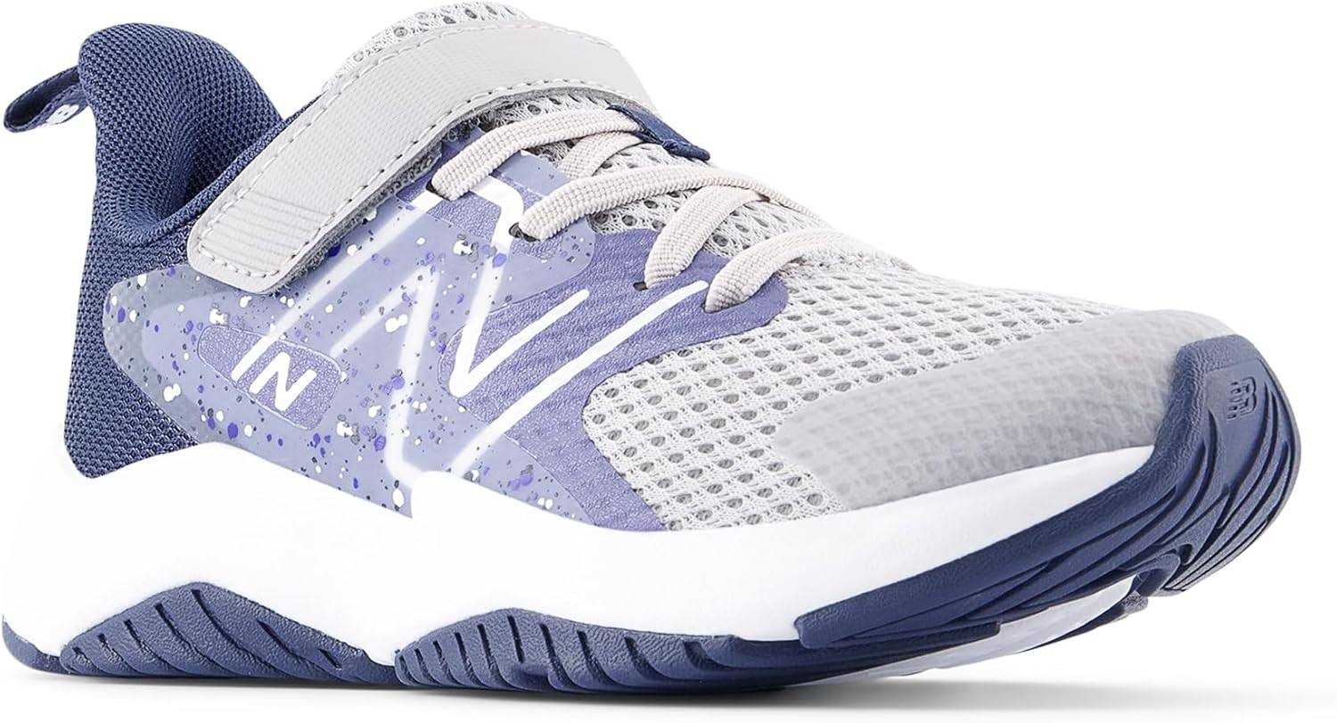 The Rave Run v2 Bungee Lace with Hook and Loop Top Strap kids’ performance running shoe from New Balance offers soft comfort with a youthful vibe. The lightweight mesh and synthetic upper is breathable, with a no-sew tip for durability and no-sew saddle for midfoot support. It’s designed with an IMEVA midsole that helps offer superior underfoot cushioning and a durable rubber outsole that can stand up to all-day play. An alternative closure allows for quick-and-easy changes that won’t slow active tots down.