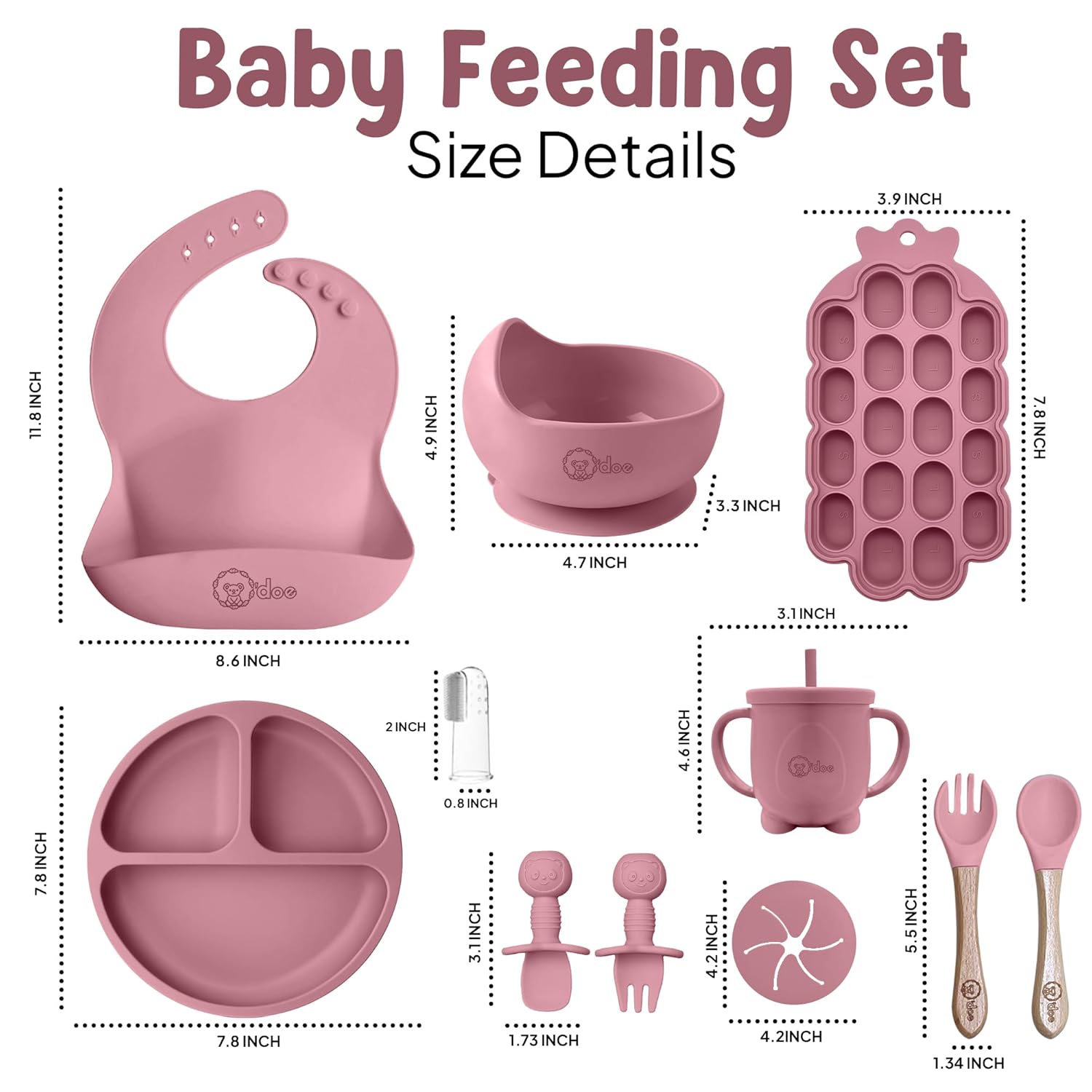 𝟏𝟓-𝐢𝐧-𝟏 𝐁𝐚𝐛𝐲 𝐖𝐞𝐚𝐧𝐢𝐧𝐠 𝐄𝐬𝐬𝐞𝐧𝐭𝐢𝐚𝐥𝐬 – 𝐅𝐮𝐥𝐥 𝐒𝐢𝐥𝐢𝐜𝐨𝐧𝐞 𝐅𝐞𝐞𝐝𝐢𝐧𝐠 𝐊𝐢𝐭: This complete baby silicone feeding set includes everything: suction plate, bowl, bib, baby spoon and bowl set, sippy cup, freezer tray, fruit feeder, and baby toothbrush. It’s the perfect feeding set for 6 month old, made for baby led weaning. Ideal for those looking for a premium baby solids starter kit, baby dish set, or baby dining set.