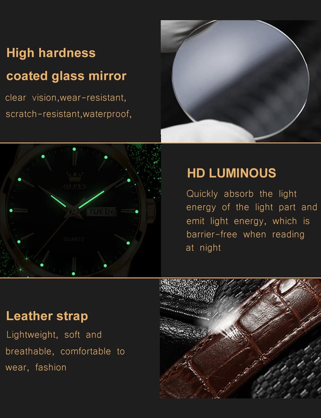 OLEV is mainly engaged in simulating quartz watches, with movements from Japan and high-quality engraving.