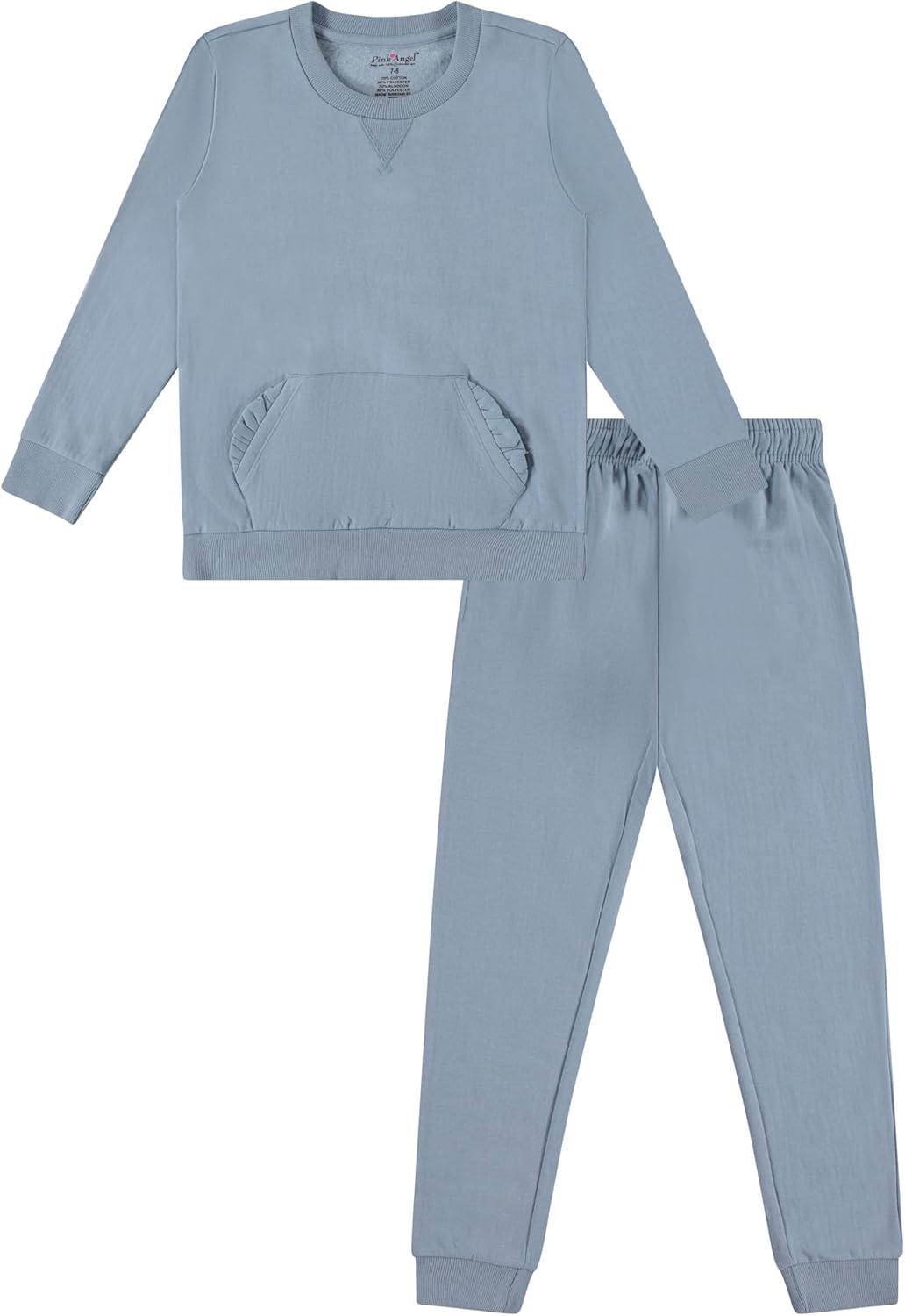 Pink Angel 2-Piece Girls’ Fleece Sweatshirt and Jogger Set – Soft Matching Loungewear Outfit for Kids (Sizes 2T-16)