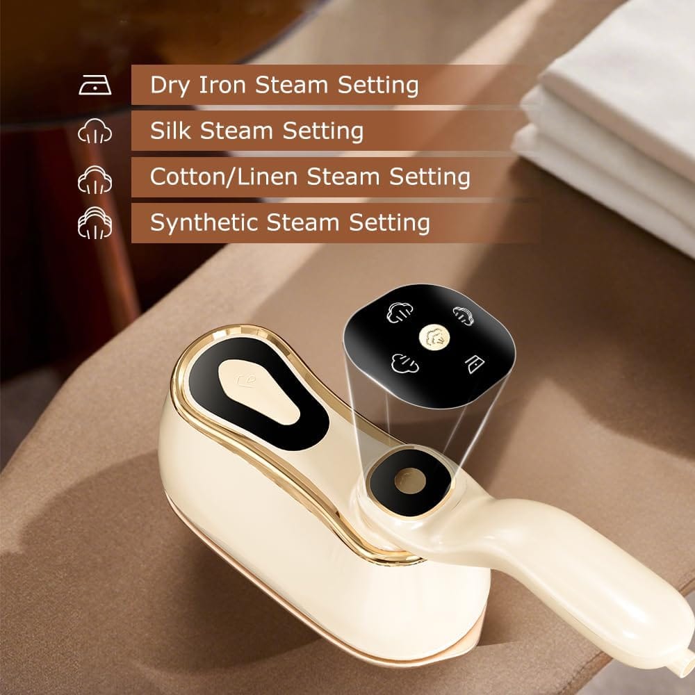 【4-Smart Fabric Care Modes】:Operate this garment steamer for clothes intuitively with clear indicator lights and a 4-mode temperature system: 1 Dry Iron mode for delicate fabrics requiring no steam, plus 3 steam levels (Low 18g/min, Medium 21g/min, High 25g/min). Press buttons to match steam intensity to all fabrics from silk to denim or suits. This professional steamer for clothes delivers stable heat output that protects fibers while ensuring wrinkle-free results