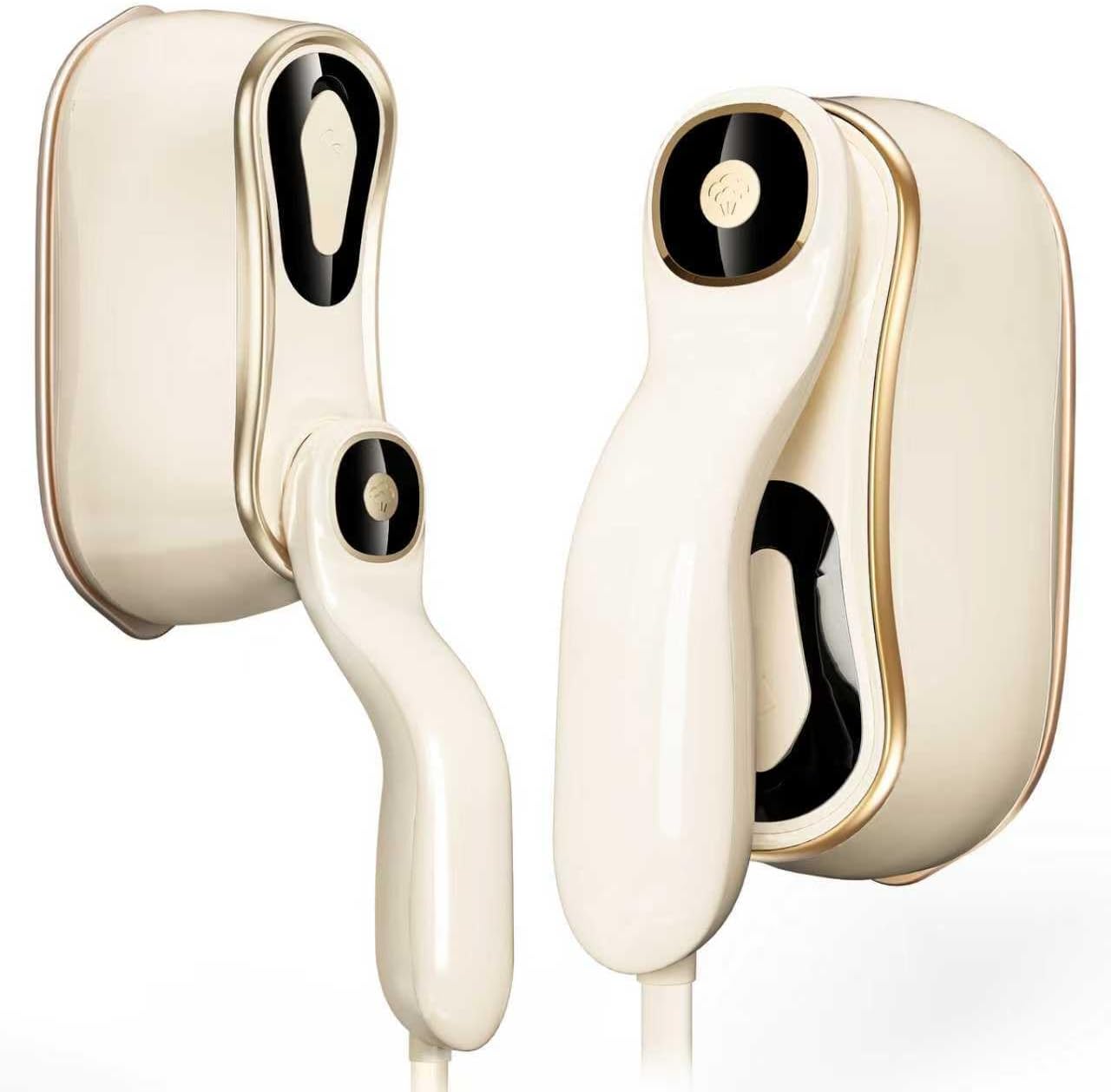 【2-in-1 Travel Steamer Functionality】:Stop using bulky irons! This compact handheld garment steamer combines hanging steaming and flat pressing in one device. Powered by a 1000W heating core and intelligent water pump technology, it delivers efficient steam through 9 holes to quickly remove wrinkles. The ceramic-coated soleplate glides smoothly for refreshing hanging shirts/dresses or pressing on home surfaces like desks or tables