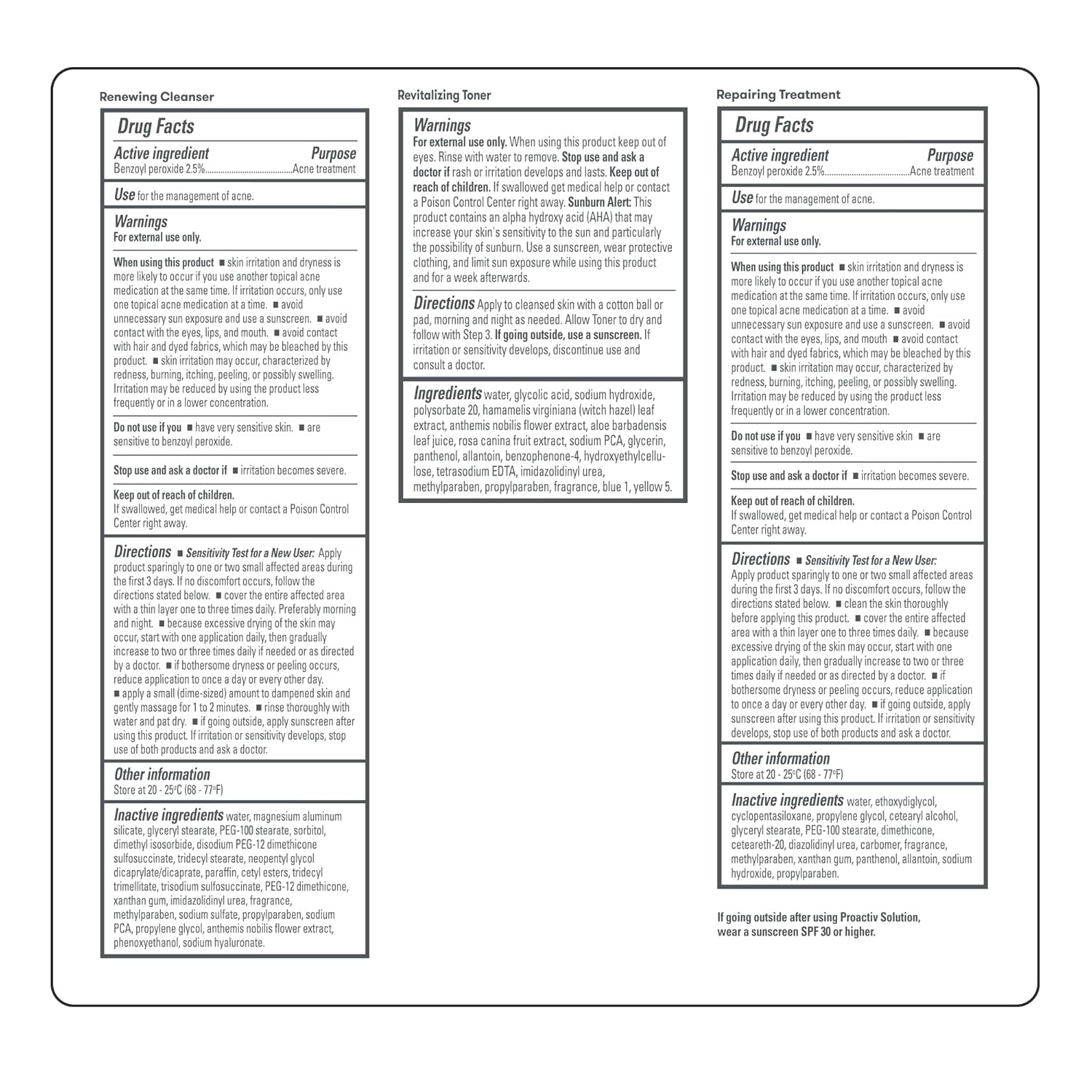 It’s the first 3-step acne treatment system that started a skin care revolution. Designed specifically for acne-prone skin, this Proactiv acne treatment kit delivers finely-milled benzoyl peroxide deep into your pores to help stop acne-causing bacteria in its tracks and prevent new breakouts from forming. This acne kit includes Renewing Cleanser, an acne face wash, Revitalizing Toner, and Repairing Treatment, the original acne treatment cream plus 15 Zit Happens ACNE patches. The starter acne treatment system is a 90-day introductory size of Proactiv Solution 3-Step regimen to help ease your skin into your new acne care program. As you incorporate Proactiv into your regular routine, you should begin to see visible changes to your skin in the weeks ahead. In the first week, your skin is acclimating to the Proactiv acne treatment. You may experience some dryness, slight flaking, and irritation in these early days. This is totally normal. As with any acne product, be sure to use a sunscreen of at least SPF 30 every day to protect your skin. Proactiv has a complete line of products beyond the 3-Step System, including acne, moisturizer, hydrating moisturizers, sunscreens, acne spot treatments and acne body washes, all formulated specifically for acne prone skin.