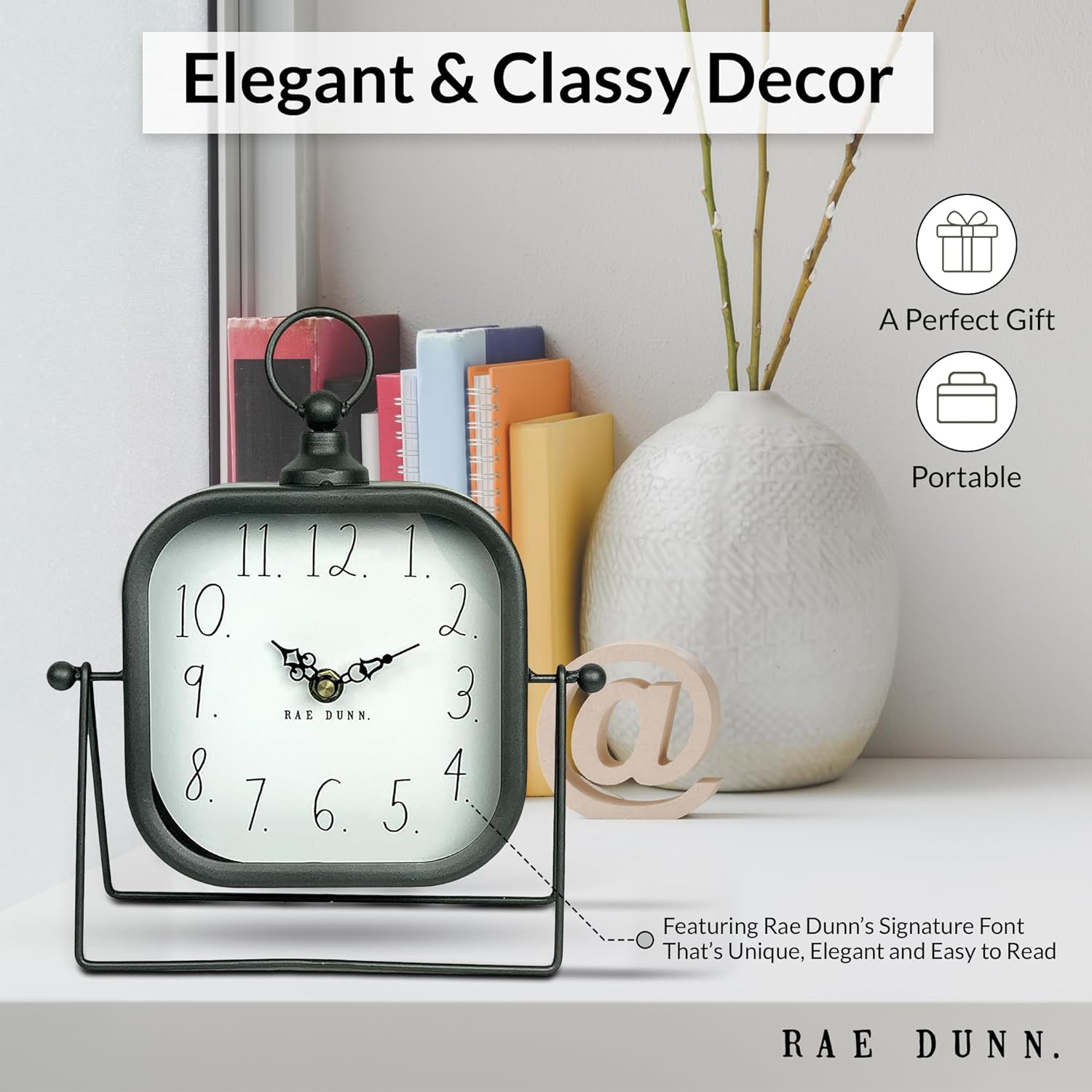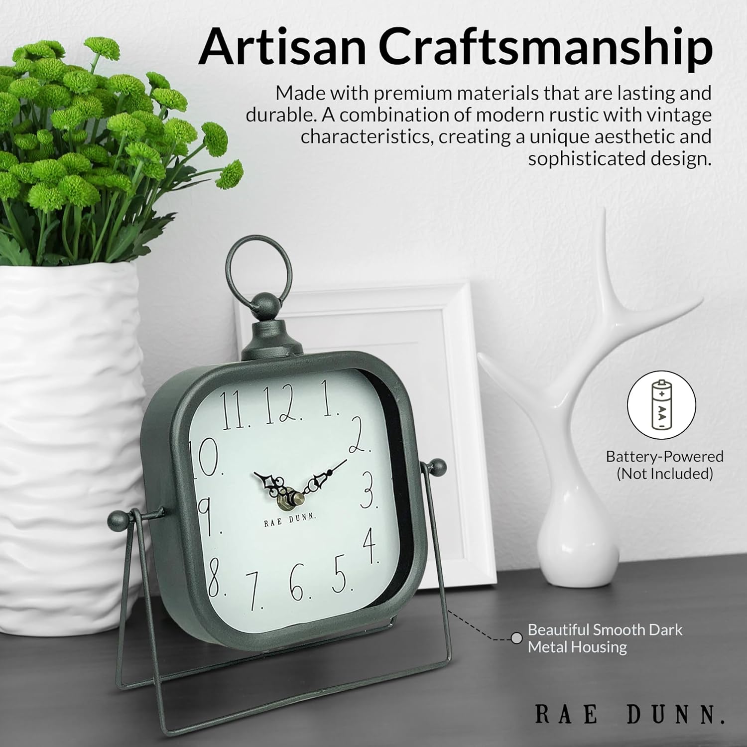 Elegant Décor Enhancement: The Rae Dunn Metal and Wood table clock, a battery operated clock, brings a touch of coziness and style to any room. Perfect for enhancing the ambiance of your office, kitchen, or living room, its appealing color schemes and tones make it a wonderful addition to any decor.