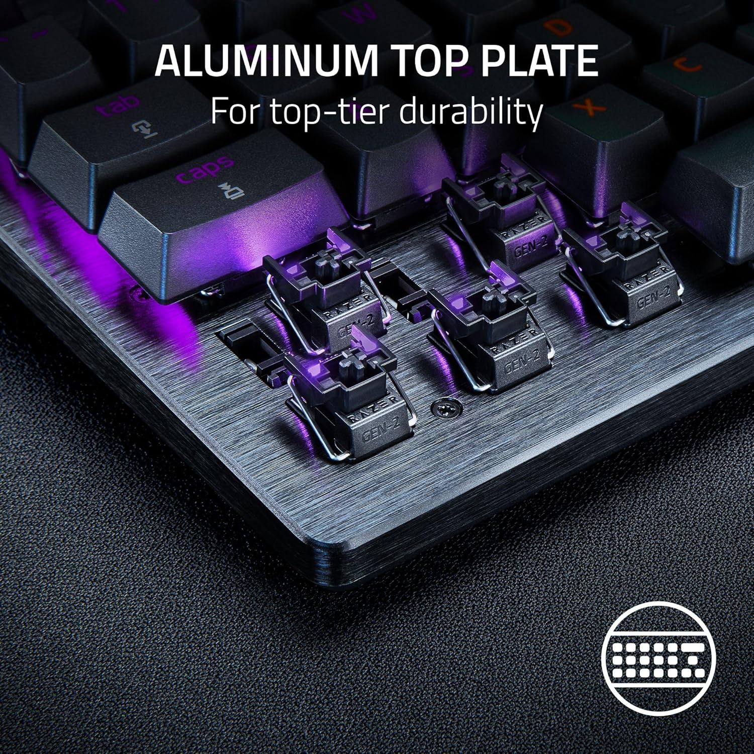 TEXTURED DOUBLESHOT PBT KEYCAPS — Made to withstand the wear and tear of intense competitive play, their shine-resistant design and fadeproof legends offer a degree of durability superior to regular keycaps