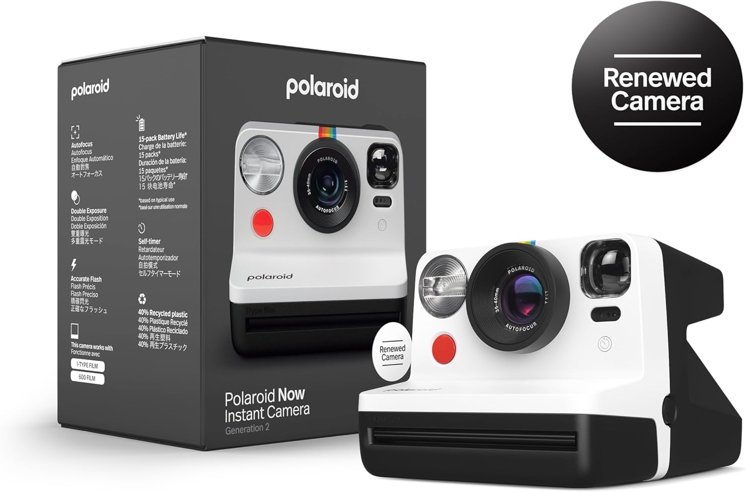 RENEWED: Factory refurbished Polaroid Now Instant Film Camera