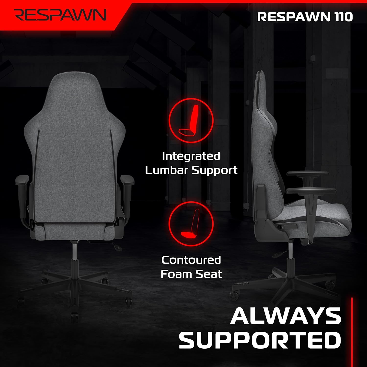 Welcome to the standard in gaming chairs – the RESPAWN 110 Gaming Chair. This isn’t just a chair; it’s your ticket to comfort paradise, where every gaming session feels like a luxurious adventure. Get ready to embark on a journey of ergonomic bliss and immersive gameplay like never before! But the RESPAWN 110 is more than just a comfortable seat – it’s a companion on your gaming adventures. With its adjustable 135 degree reclining back and tilting seat, it caters to your every need, ensuring you stay focused and energized for hours on end. Say goodbye to stiff backs and sore muscles – we have your back, literally! And let’s talk style – because this chair is not just about function, it’s about making a statement. With its sleek design, vibrant color options, and eye-catching accents, it adds flair to any gaming setup. Whether you’re streaming for your fans or competing in tournaments, RESPAWN 110 ensures you do it in style. From its sturdy steel tube frame construction with a 275lb weight capacity to its luxurious comfort, it’s no wonder why players everywhere are singing its praises. Join the ranks of elite gamers who demand the best and experience the difference for yourself.