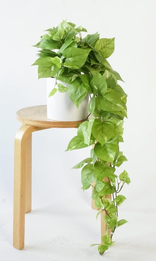 This artificial pothos plant is the perfect home decor plant for those looking to add some greenery to their room decor aesthetic. Featuring high-quality silk leaves and a realistic pot, this artificial plant looks like the real thing.