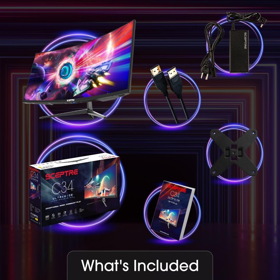 34″ Ultrawide Curved Gaming Quad HD Monitor 3440 x 1440 WQHD Resolution Up to 165Hz Refresh Rate 1500R Curvature AMD FreeSync Premium 2 x HDMI, 2 x DisplayPorts