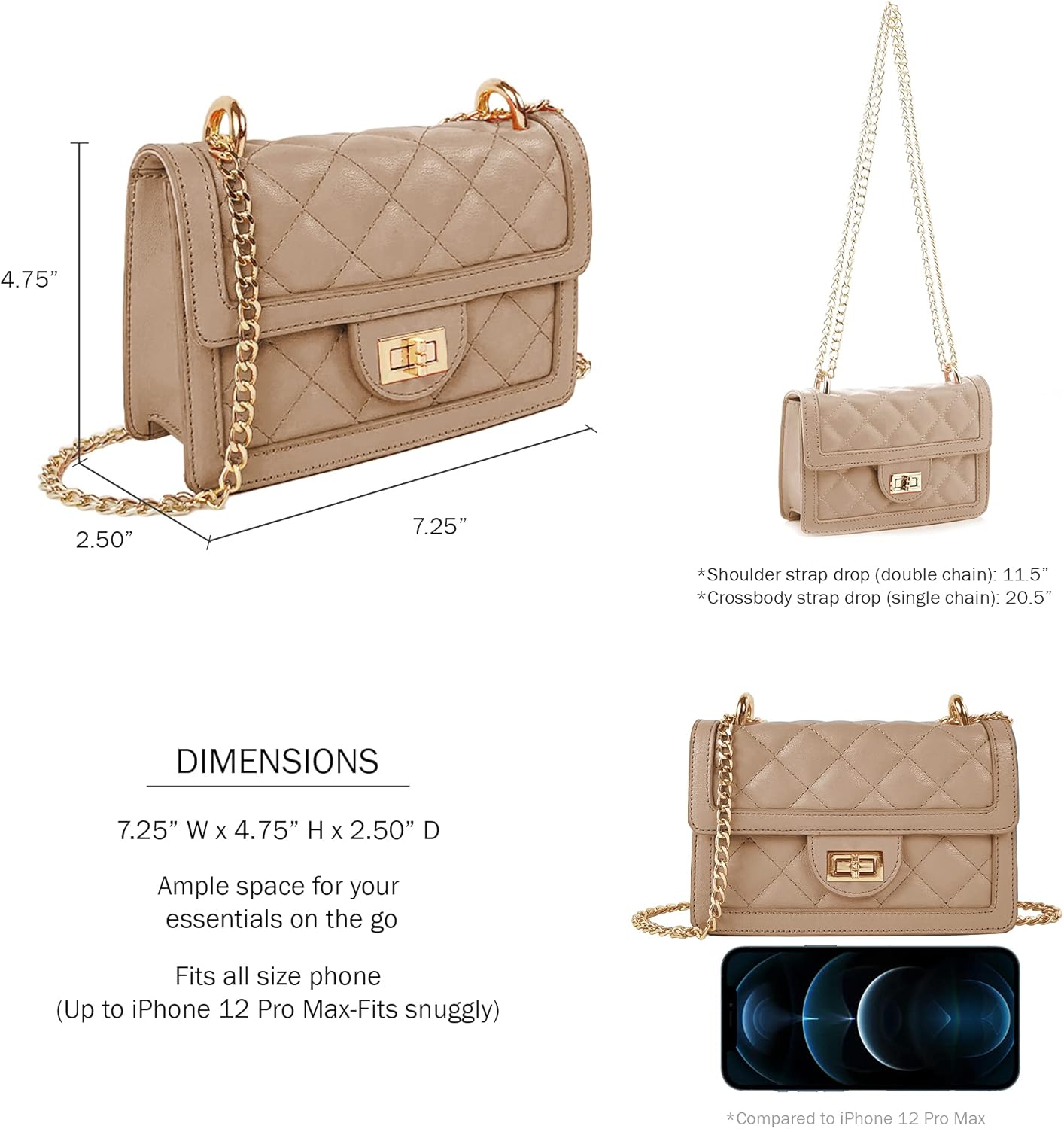 Customers find the crossbody bag stylish, with one noting it doesn’t look cheap or fake, and appreciate its quality and value for money. The bag is versatile, being perfect for night out essentials, and customers like its color options, with one mentioning the gold chain. While customers find it roomy, with one noting it can hold multiple items, opinions about durability are mixed – some find it sturdy while others report the strap breaking after two months.