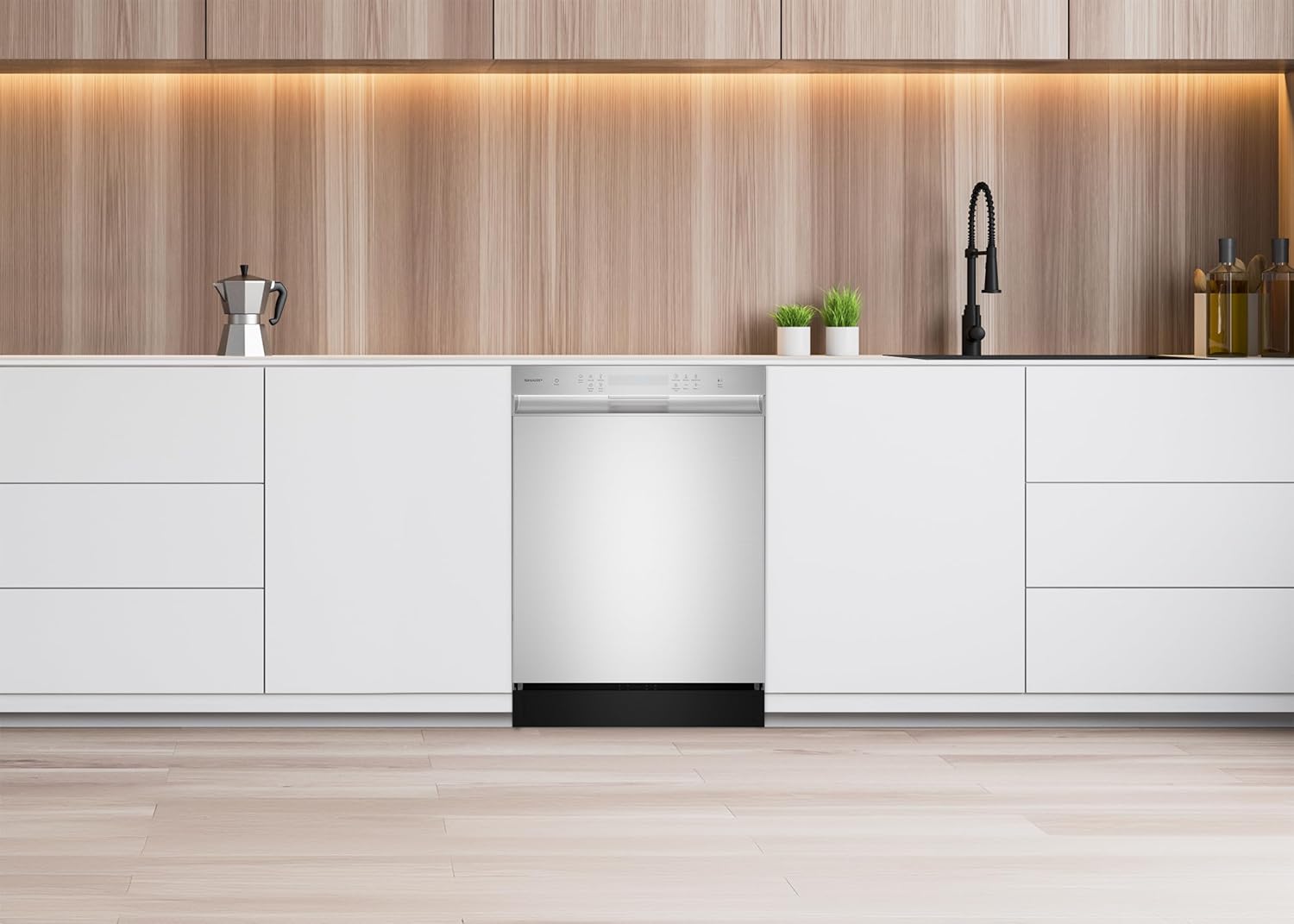 Sharp SDW6504MS Stainless Steel Dishwasher, 24-inch Pocket Handle, 52 dB, Hybrid Tub, 12 Place Settings, 5 Cycles, Heated Dry