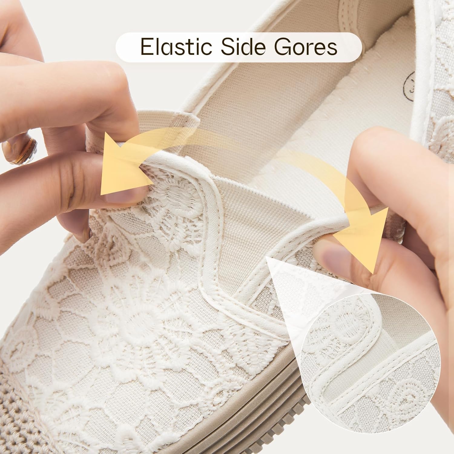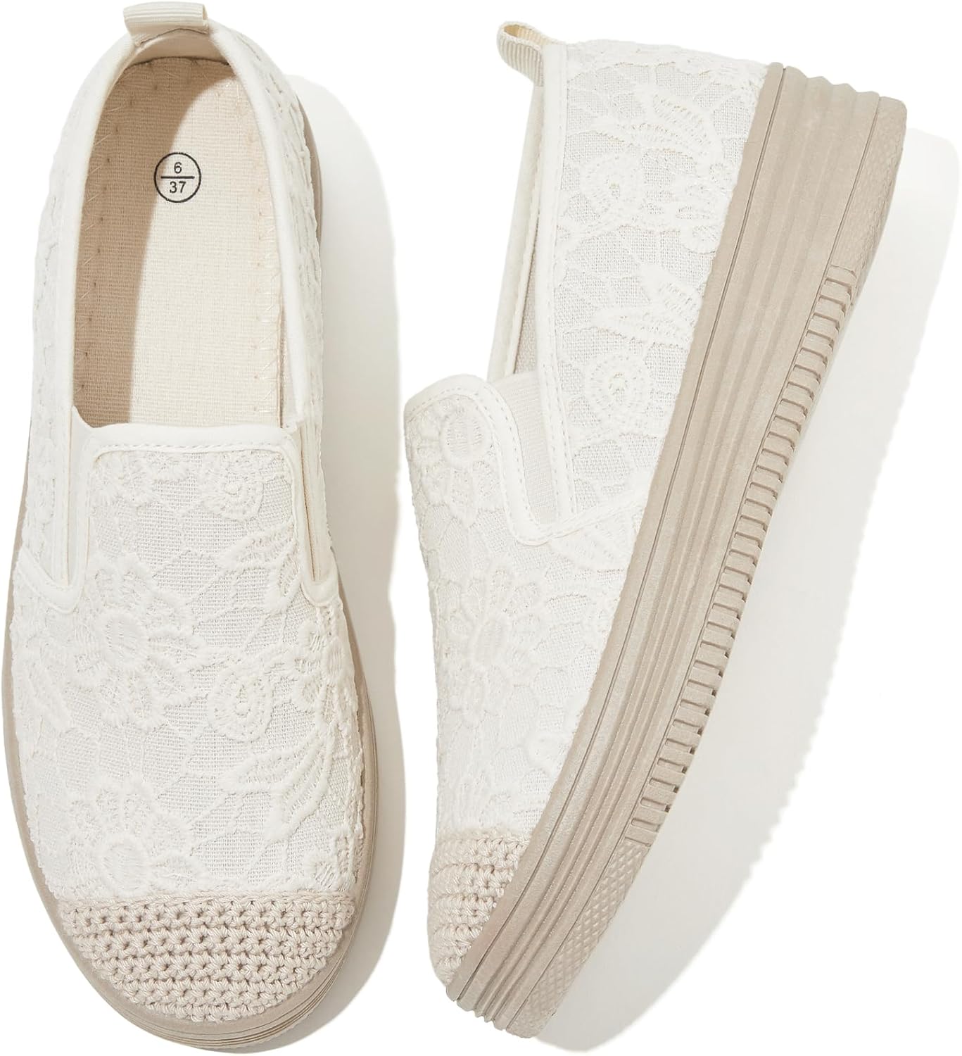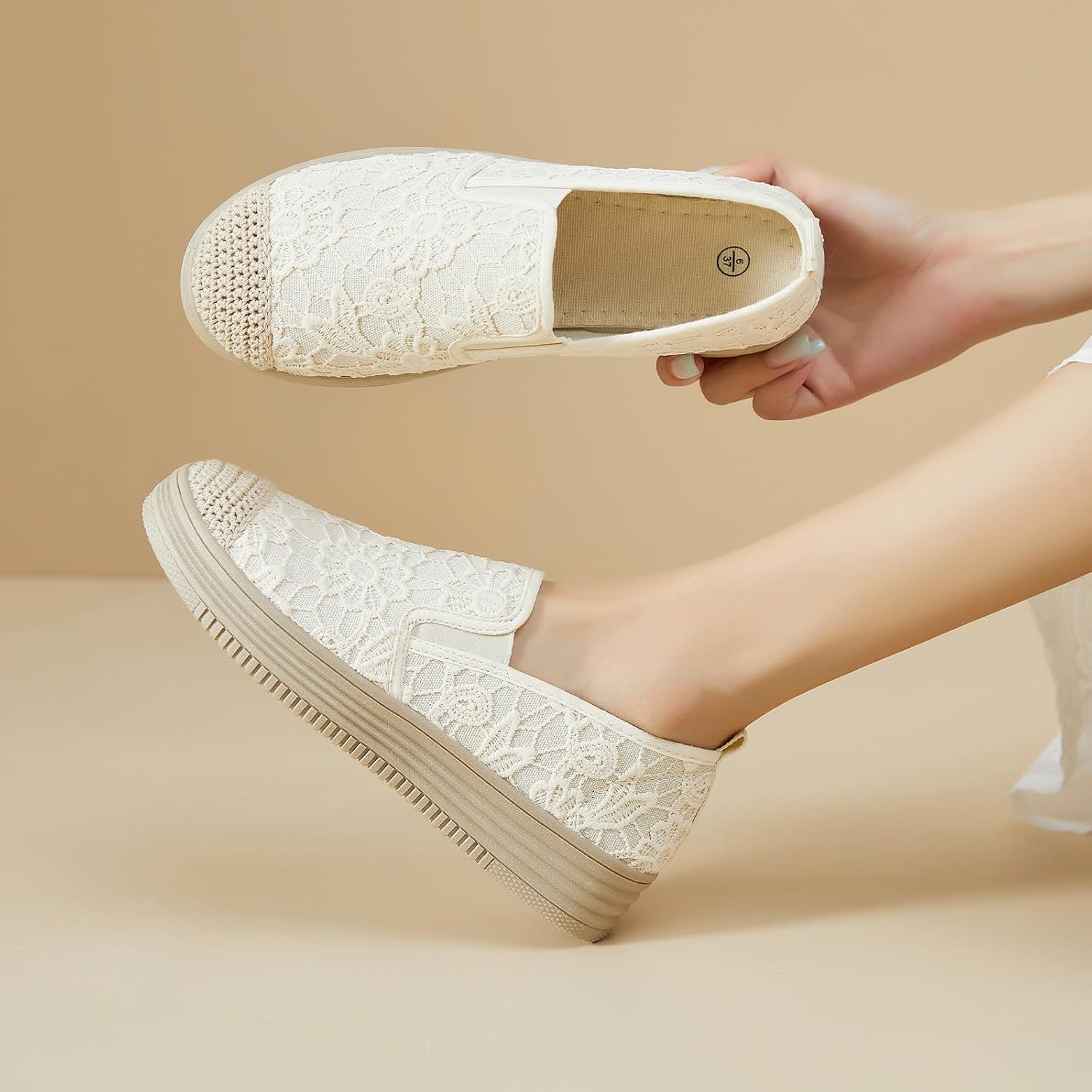 Shupua Womens Slip on Shoes Stylish Lace Casual Loafers Lightweight Platform Sneakers Comfortable Spring Flat Shoes for Office, Work
