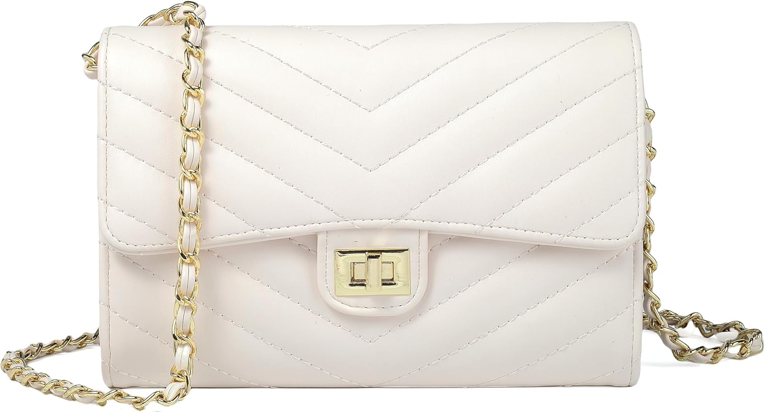 Customers find the crossbody bag classy and perfect for night out occasions, with good value for money. The bag is roomy enough for essentials, including four card slots for IDs and cards, and customers appreciate its small size that accommodates a cell phone. The quality is nice, though durability receives mixed feedback – while some find it durable, others report issues with the chain breaking on the first day.
