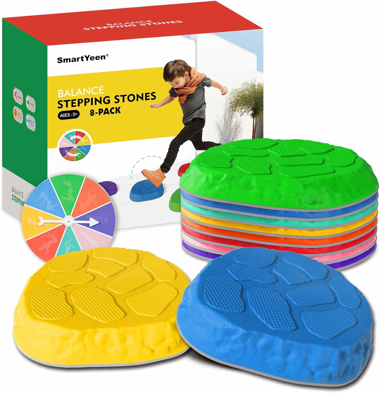 SmartYeen stepping stones super value pack,include 8-pack high quality balance stones in bright colors,designed for kids coordination play.
