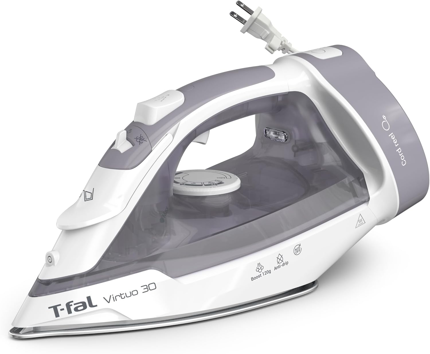 Introducing the T-fal Virtuo 30, the reliable steam iron designed to make ironing easy and efficient. With 1500W of power and a fast 30-second heat-up, you’ll experience quick wrinkle removal every time. The reliable continuous steam output and powerful steam boost handle even the toughest wrinkles, while the scratch-resistant ceramic soleplate ensures smooth, effortless gliding. Enjoy added peace of mind with the auto-off feature, and the retractable cord system makes storage quick and convenient. Perfect for everyday use, the Virtuo 30 delivers impressive results with ease.