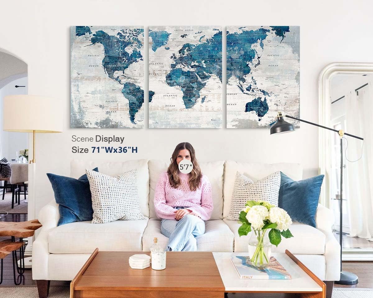 DECORATIVE MAP – Professionally printed works of art on quality canvas. Each panel is 23.6″ by 35.4″, set of 3, the overall size is 70.8″ x 35.4″